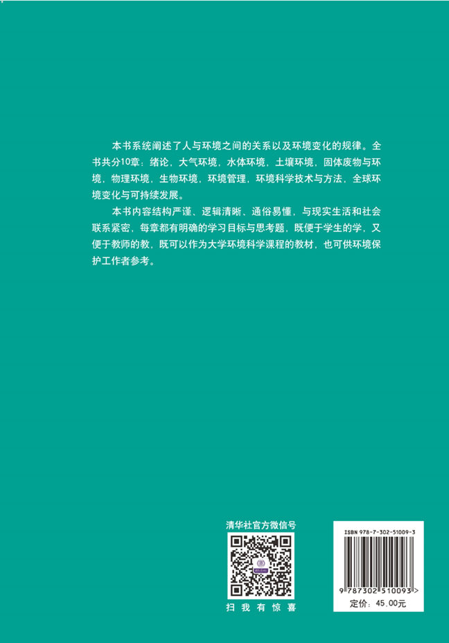 本教材以人类面临的主要环境问题为研究对象,系统地阐述了人类活动影响下环境要素的变化以及污染物在大气、水体、土壤中的迁移转化规律,并介绍了固体废物污染、物理污染和生物污染对环境的影响,同时从环境管理的视角探讨了解决环境问题的途径,最后对全球性环境问题及可持续发展理论进行了概论性的阐述。 本教材每章之前明确了学习目标,章节中附有典型的阅读材料,每章之后附以思考题,并提供了开放性的学习资源,以此提高教材的实用性,既有利于学生的学,又有利于教师的教,尤其是有利于培养学生的综合思维及解决实际问题的能力。 本教材可作为环境科学、环境工程、资源与环境规划等专业的基础课程教材,也可作为环境科学公选课的教材,同时也可供从事环境保护工作的专业人员参考。