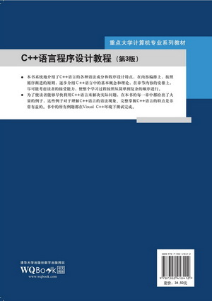 C++语言是在C语言的基础上发展起来的面向对象程序设计语言,它不仅可以编写应用软件,而且特别适合于编写系统软件。本书共由10章组成,按照循序渐进的原则,逐步而系统地介绍C++语言的基本概念和语法规则,特别是用了大量的篇幅来详细讲解面向对象程序设计的基本概念,包括类、继承、多态和重载等,并利用单独的一章来专门介绍类的设计,使读者在学完本书后,能尽快应用C++语言来解决实际问题。本书是作者根据多年的C++语言教学经验和实践体会编写而成的,在内容编排上尽量体现易学的特点,在文字叙述上力求条理清晰、简洁,便于读者阅读。 本书可以作为大专院校计算机专业或非计算机专业教材及教学参考书,也可作为自学用书。