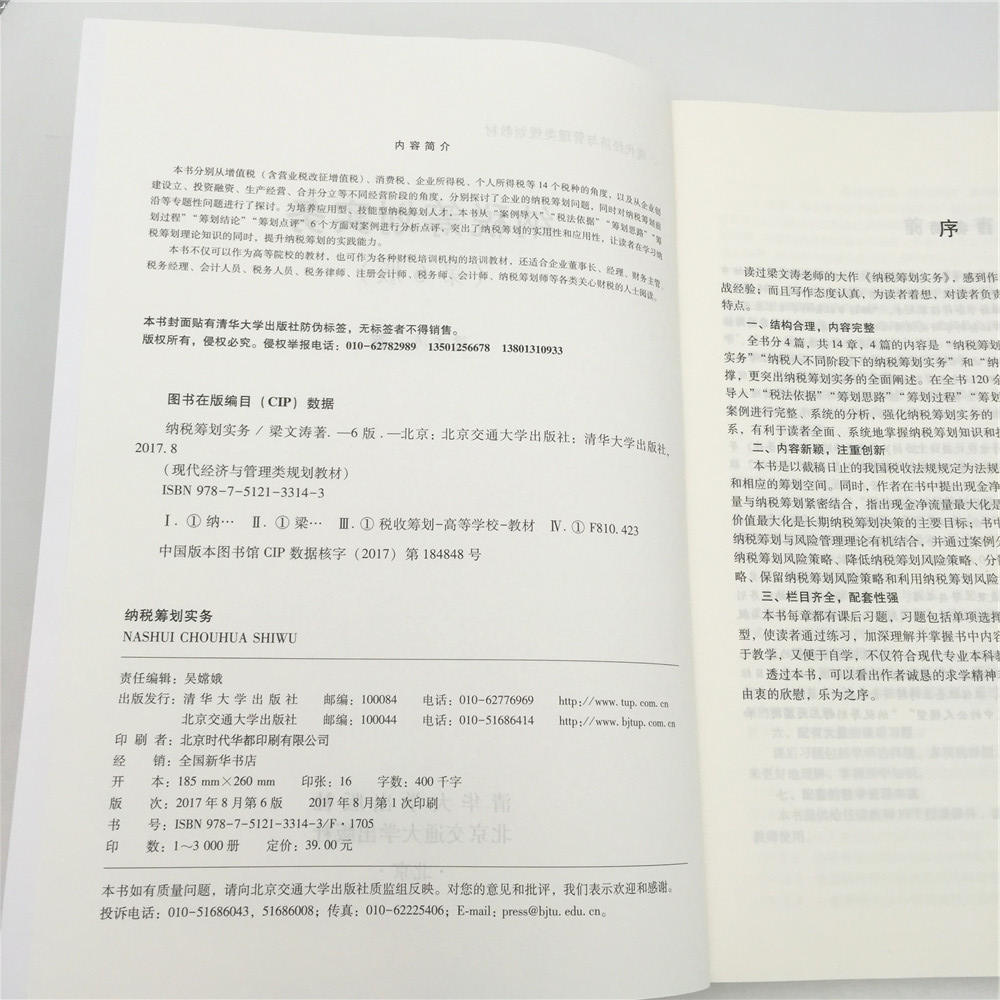 本书分别从增值税(含营业税改征增值税)、消费税、企业所得税、个人所得税等14个税种的角度,以及从企业创建设立、投资融资、生产经营、合并分立等不同经营阶段的角度,分别探讨了企业的纳税筹划问题,同时对纳税筹划前沿等专题性问题进行了探讨。为培养应用型、技能型纳税筹划人才,本书从“案例导入”“税法依据”“筹划思路”“筹划过程”“筹划结论”“筹划点评”6个方面对案例进行分析点评,突出了纳税筹划的实用性和应用性,让读者在学习纳税筹划理论知识的同时,提升纳税筹划的实践能力。 本书不仅可以作为高等院校的教材,也可作为各种财税培训机构的培训教材,还适合企业董事长、经理、财务主管、税务经理、会计人员、税务人员、税务律师、注册会计师、税务师、会计师、纳税筹划师等各类关心财税的人士阅读。