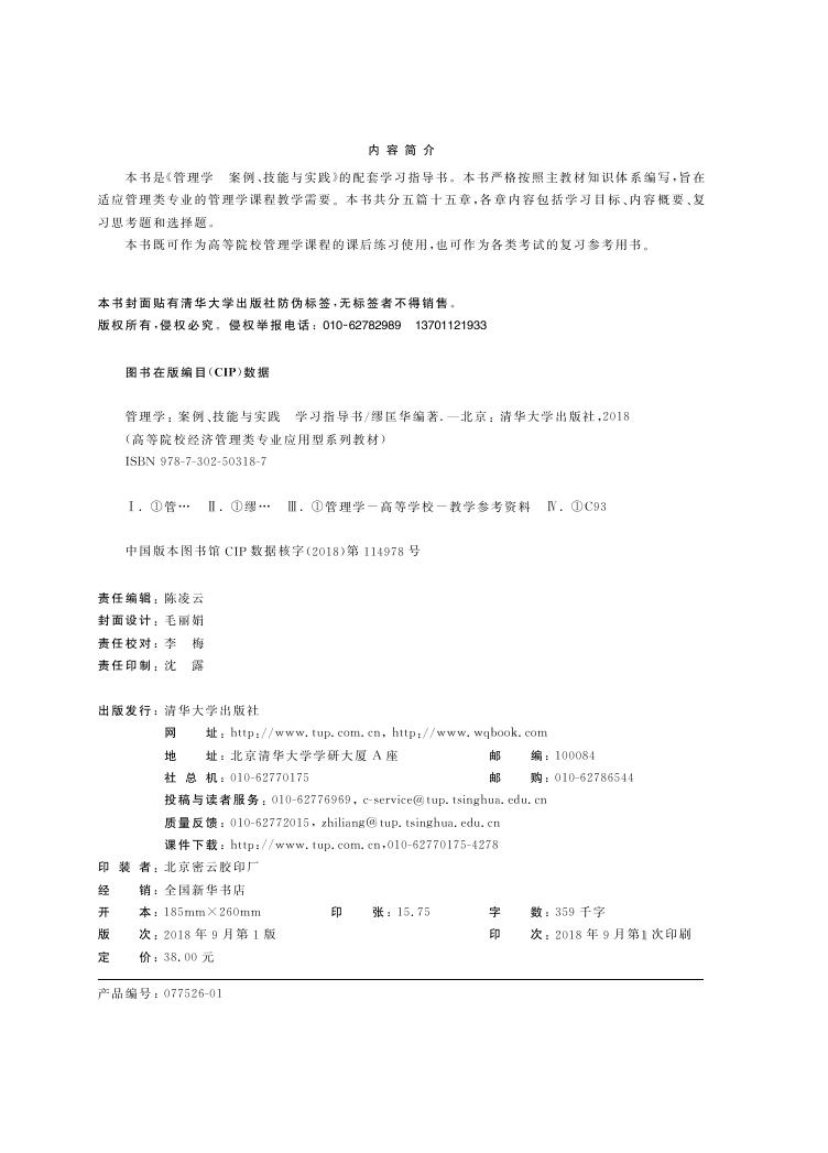 本书是《管理学 案例、技能与实践》的配套学习指导书,严格按照主教材知识体系编写,旨在适应管理类专业的管理学课程教学需要。本书共分五篇十五章,各章内容包括学习目标、内容概要、复习思考题、选择题。本书既可作为高等院校管理学课程的课后练习使用,也可作为各类考试的复习参考用书。