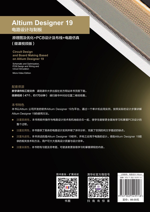(3)注重先进性。本书讲述的是Altium Designer 19软件,并将之应用于电路的设计。借助Altium Designer 19提供的相关技术和方法,用户可大大提高设计质量与设计效率。