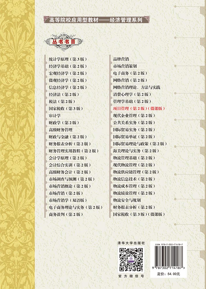 "《项目管理(第2版)(微课版)》结合实际教学经验编写而成,在为学生勾画了一个项目管理整体轮廓的基础之上,系统介绍了项目管理知识领域的重要知识点的内容,配备了丰富的案例分析、习题巩固和实际操作技能练习,有助于学生理解、掌握和灵活运用所学知识。