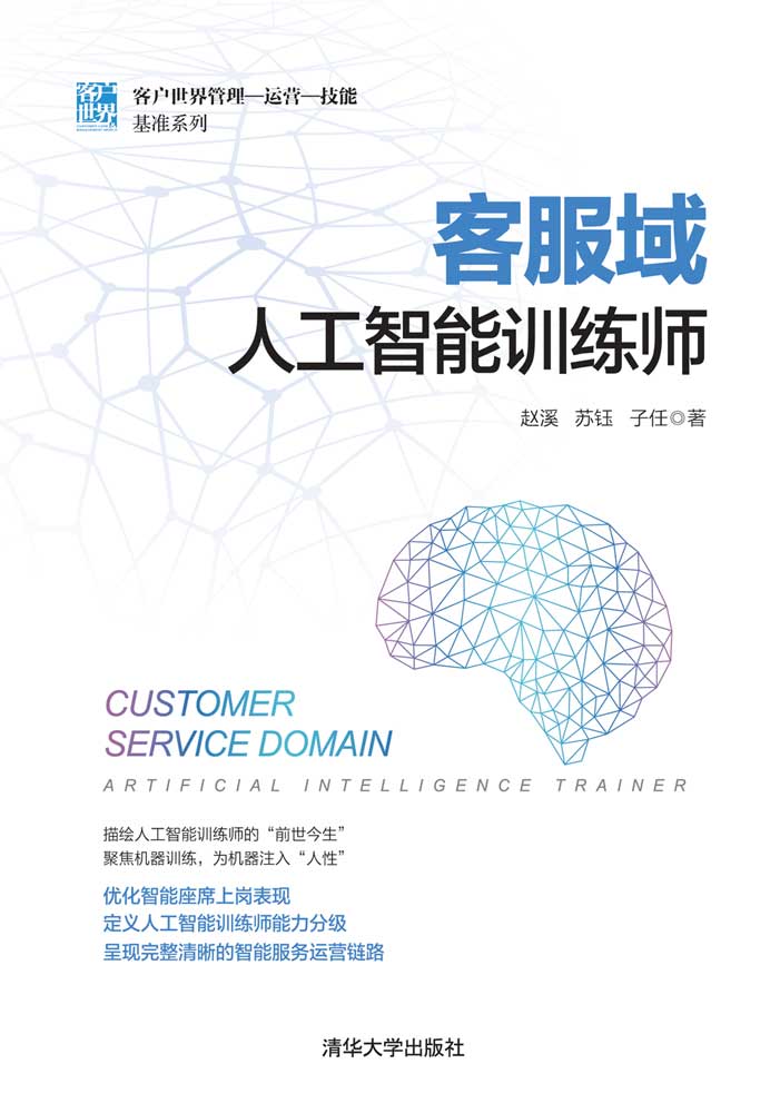 赵溪,客户中心能力成熟度模型(CC-CMM)国际标准组织主席,中国呼叫中心产业能力建设管理规范工作组组长,中国信息协会数字经济专业委员会副会长,中国呼叫中心协会创始会长,亚太呼叫中心产业联盟发起人;《客户世界》杂志创始人及出品人,出版《客户服务导论与呼叫中心实务》《呼叫中心运营与管理》《客户中心能力成熟度模型》等著作。苏钰,客户世界机构AIT首席专家,人工智能训练师专栏作家,多项国家级人工智能项目训练师负责人,深度参与人工智能训练师职业申报、职业技能标准构建,长期从事人工智能服务训练与咨询管理工作,从0到1搭建智能产品训练师团队及训练体系,帮助多家世界500强企业诊断智能服务训练症结,提升团队训练运营能力。子任,客户服务行业最早一批智能服务管理者和智能服务行业领军人才。
