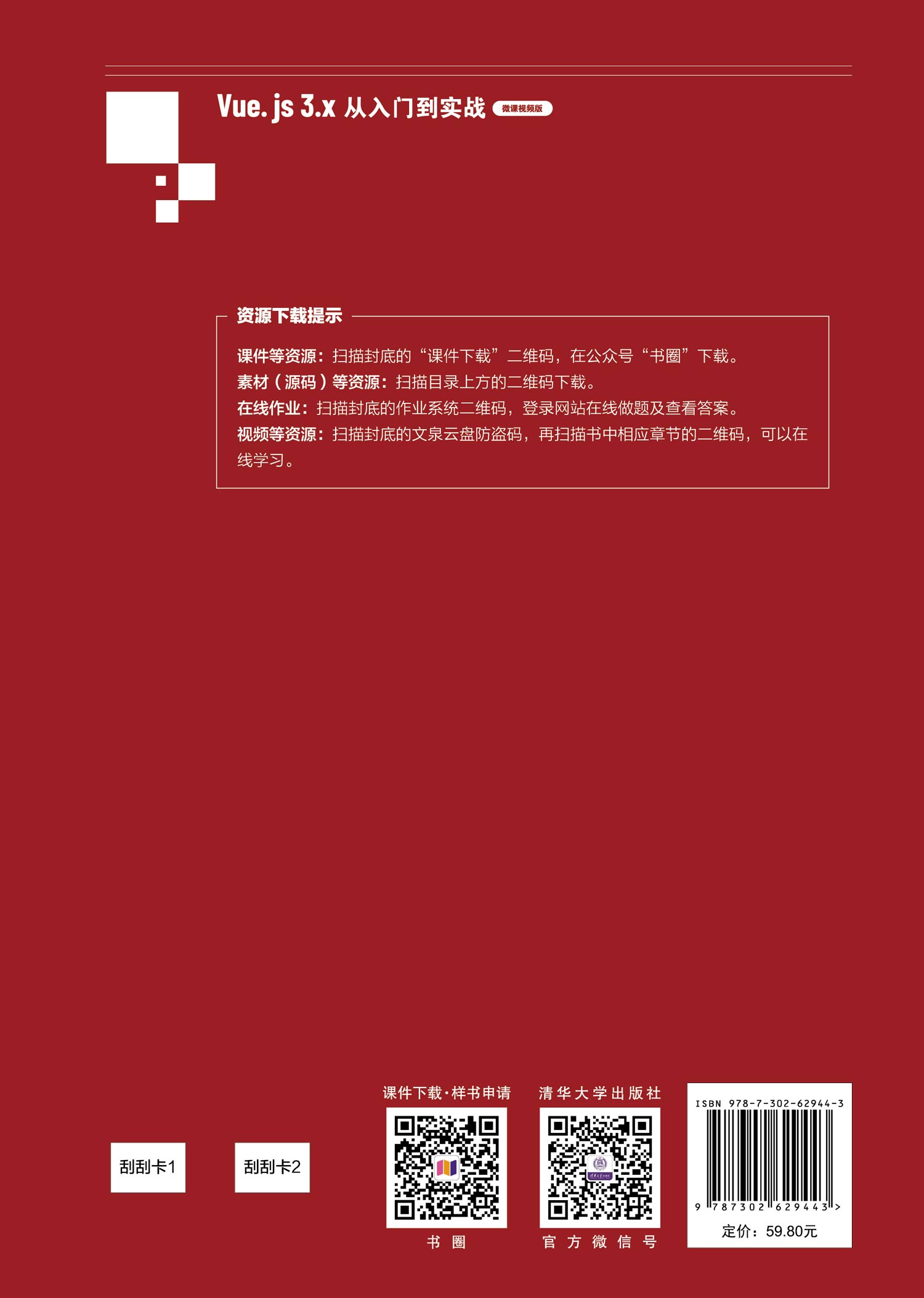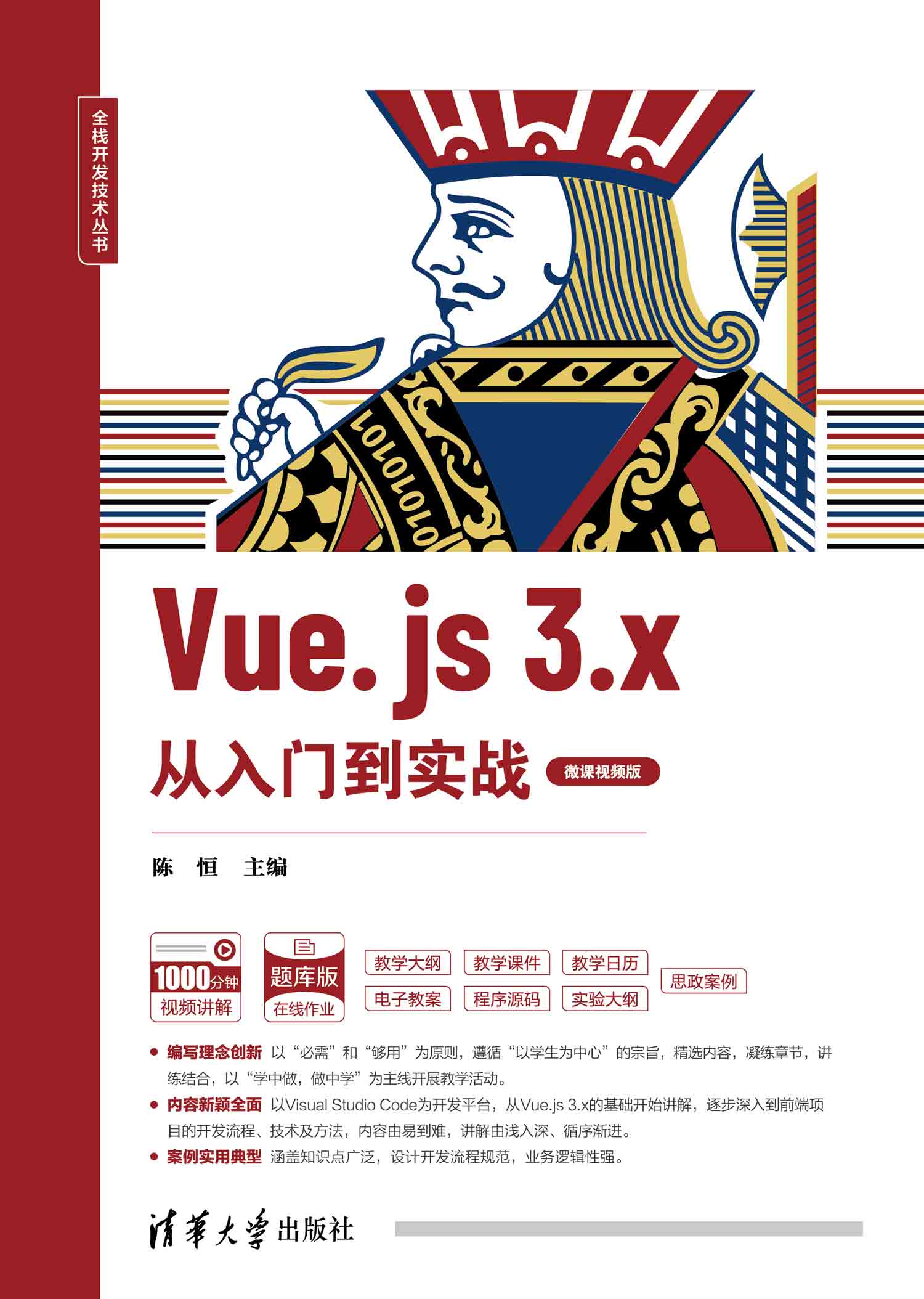 (2)内容新颖全面。以Visual Studio Code为开发平台,从Vue.js 3的基础开始讲解,逐步深入到前端项目的开发流程、技术及方法,内容由易到难,讲解由浅入深、循序渐进。
