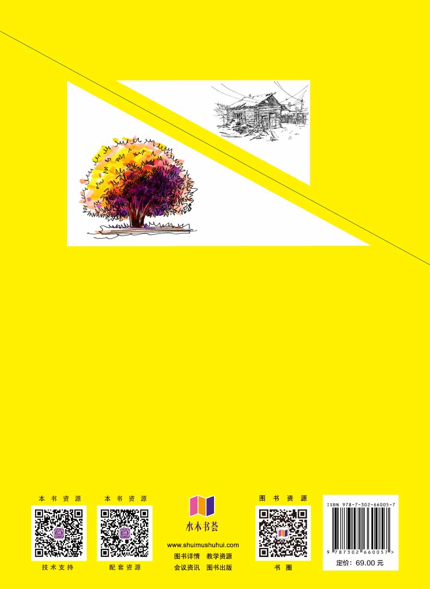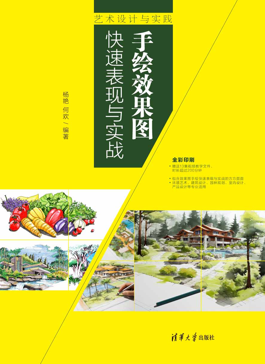 环境艺术设计发展至今,手绘效果表现图已越来越被社会所接受。通过手绘的方式可以用最快、最简便的方式来记录创作灵感,而且不受时间、地点、工具的限制,便于修改和增删。作为一种设计表现形式,手绘效果表现已经慢慢成为设计师必备的基本技能之一。在科技高速发展、各种计算机制图工具充斥的今天,手绘以其独特的艺术魅力,仍然受到很多设计师的青睐。 手绘效果表现不仅是一门设计艺术,也是一门绘画艺术,所以在学习手绘效果表现的过程中,不仅可以培养设计师的设计思想,还能提高欣赏眼光。一幅好的手绘效果图,包括透视、比例、形体、空间、配色等各方面的搭配和关系处理,对于培养设计师自身的空间比例、色彩搭配等方面的技能,都有很大的帮助。 本书在吸收国内外优秀手绘效果图理论的基础上,重点讲解了手绘效果图设计的核心理论和设计方法,尤其注重设计理论与实践的结合,运用大量的案例,培养读者的思维能力和设计能力。 本书定位明确,主要内容包括手绘基本工具及其应用、透视基本原理及应用、马克笔上色基本技法,以及马克笔在手绘效果图设计中的应用等。针对马克笔手绘表现的特点,介绍了马克笔表现手法技巧在相关设计行业中的应用方法,内容紧紧围绕实际设计案例,强调了实用性、突出实例性、注重操作性,使读者能够学以致用。 本书由电子科技大学成都学院杨艳和何欢编著, 杨艳为第1作者,编写了本书第1~3章,何欢为第2作者,编写了本书第4~6章。 本书的配套资源请扫描下面的二维码进行下载,如果有技术性问题,请扫描下面的相应二维码,联系相关技术人员解决,如果在下载过程中碰到问题,请联系陈老师(邮箱:chenlch@tup.tsinghua.edu.cn)。