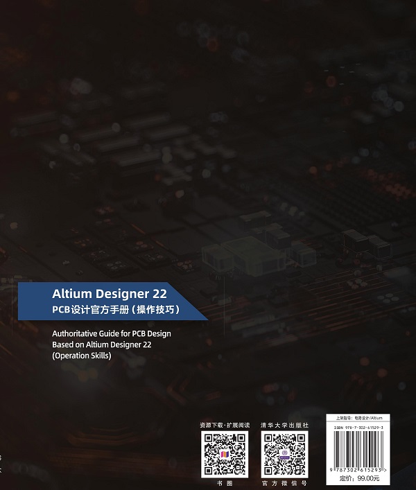 在写本书之前,我们编写了一套《Altium Designer 21 PCB设计官方指南》基础和高级实战书籍,分别 适用于初学者和有一定高速设计经验的工程师,这套书得到很多读者的支持与认可。在 Altium Designer 22 发布后,基于该软件强大的功能和深厚的工程应用底蕴,我们力图编写一本全面描述 Altium Designer 22 在 实际工程应用中出现的问题并加以规范解答的书籍。针对电子工程专业和行业需要,将 Altium Designer 22 知识脉络作为导向,以实例作为切入点,帮助读者快速掌握工程设计中的基本技能和操作技巧。 本书以 Altium Designer 22 为平台,通过大量的实战演示来详细讲解多达 400 个问题的解决方法及软件 操作技巧。全书共分为 21 章。第 1 章:软件安装,内容包括软件安装可能遇到的问题、插件安装等;第 2 章:软件界面设置,内...