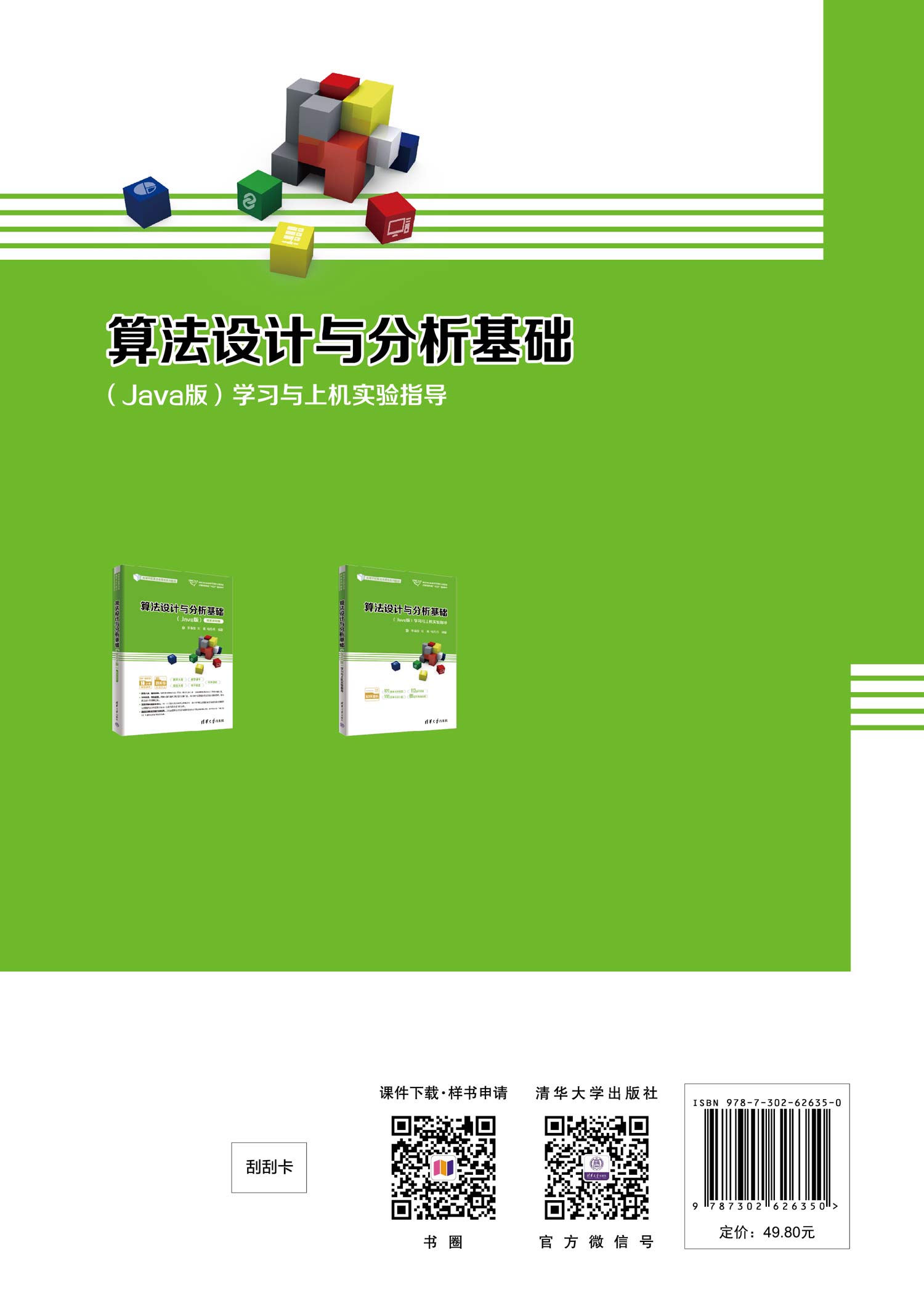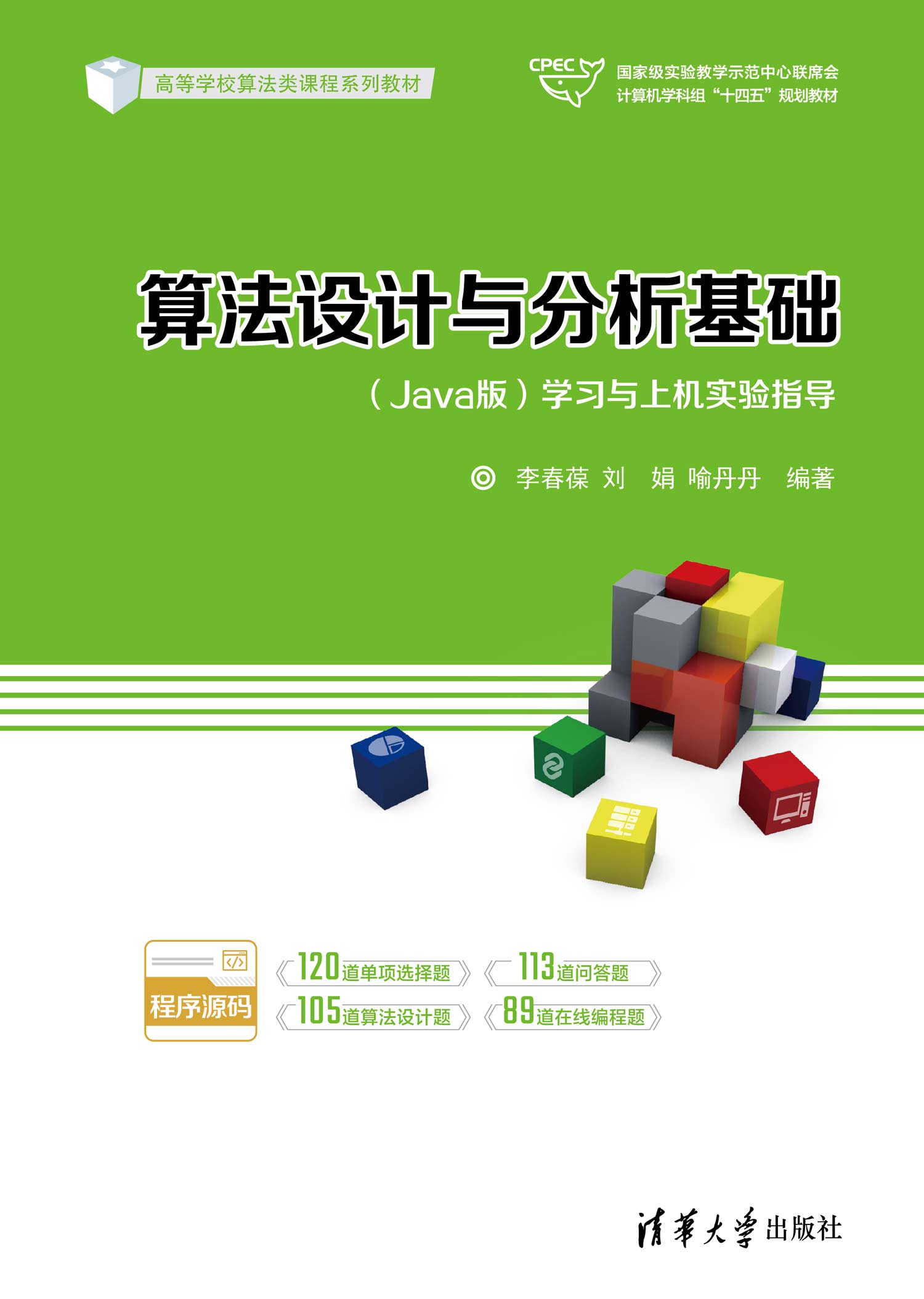前言 本书是《算法设计与分析基础(Java版)(微课视频版)》(李春葆等,清华大学出版社,2023,以下简称为《教程》)的配套学习与上机实验指导书。全书共分为9章,与《教程》的各章相同。本书包含338道练习题,其中单项选择题120道,问答题113道,算法设计题105道,所有练习题都给出了详细的解题思路和参考答案;在线编程题89道,与相关知识点对应,难度适中,均选自LeetCode网站,所有在线编程题都给出了解题思路、提交可通过(Accept)的源代码、执行时间和空间信息。另外,本书提供了两个附录,附录A给出了在线编程实验报告格式,附录B给出了在线编程实验报告示例。 本书提供书中习题的程序源码和两套期末试卷,读者扫描封底的文泉云盘防盗码,再扫描目录上方的二维码,可以下载。书中所有程序的调试和运行环境为Java 1.8。 书中列出了全部练习题和在线编程题题目,因此自成一体,可以脱离《教程》单独使用。 本书的出版得到了武汉大学计算机学院核心课程建设项目和清华大学出版社魏江江分社长的全力支持,王冰飞老师给予精心编辑,LeetCode网站提供了无私的帮助,编者在此一并表示衷心的感谢。尽管编者不遗余力,但由于水平所限,本书仍存在不足之处,敬请教师和同学们批评指正。 编者 2023年7月