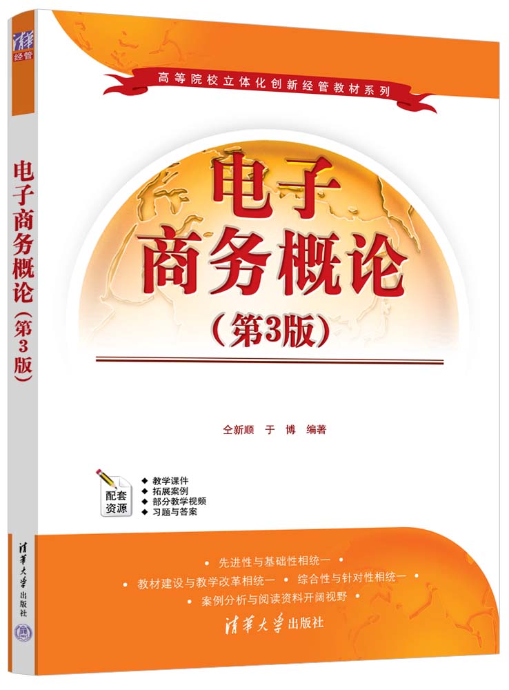 1994年Internet的商业化促进电子商务的迅猛发展,其在20余年的发展历程中不断涌现理论与实践创新成果。在此背景下,针对电子商务专业的知识体系进行了重新整合,在之前版本的基础上,新增了“直播电商理论与实践”一章;删掉了“电子商务法律”一章,将其中的部分内容融入“电子商务安全与风险管理”。全书共分三篇,第一篇为基础篇,包括电子商务概述和电子商务基础知识;第二篇为运作篇,包括网络零售、网络营销理论与应用、订单履行与物流配送、网络商店的规划与运营、移动电子商务和直播电商理论与实践的内容;第三篇为支撑环境篇,包括电子支付与网络银行、电子商务安全与风险管理等内容。 通过对《电子商务概论(第3版)的学习,学生可对电子商务有一个整体的认识,并能够了解电子商务的基本原理和关键模式,初步掌握电子商务的基本技能。 《电子商务概论(第3版)可作为高等学校本科及专科电子商务专业、物流管理专业、市场营销专业、国际贸易专业和国际商务专业的教材,也可作为各类成人高等教育教学用书,以及社会各类企事业单位相关人员的培训教材和自学参考书。