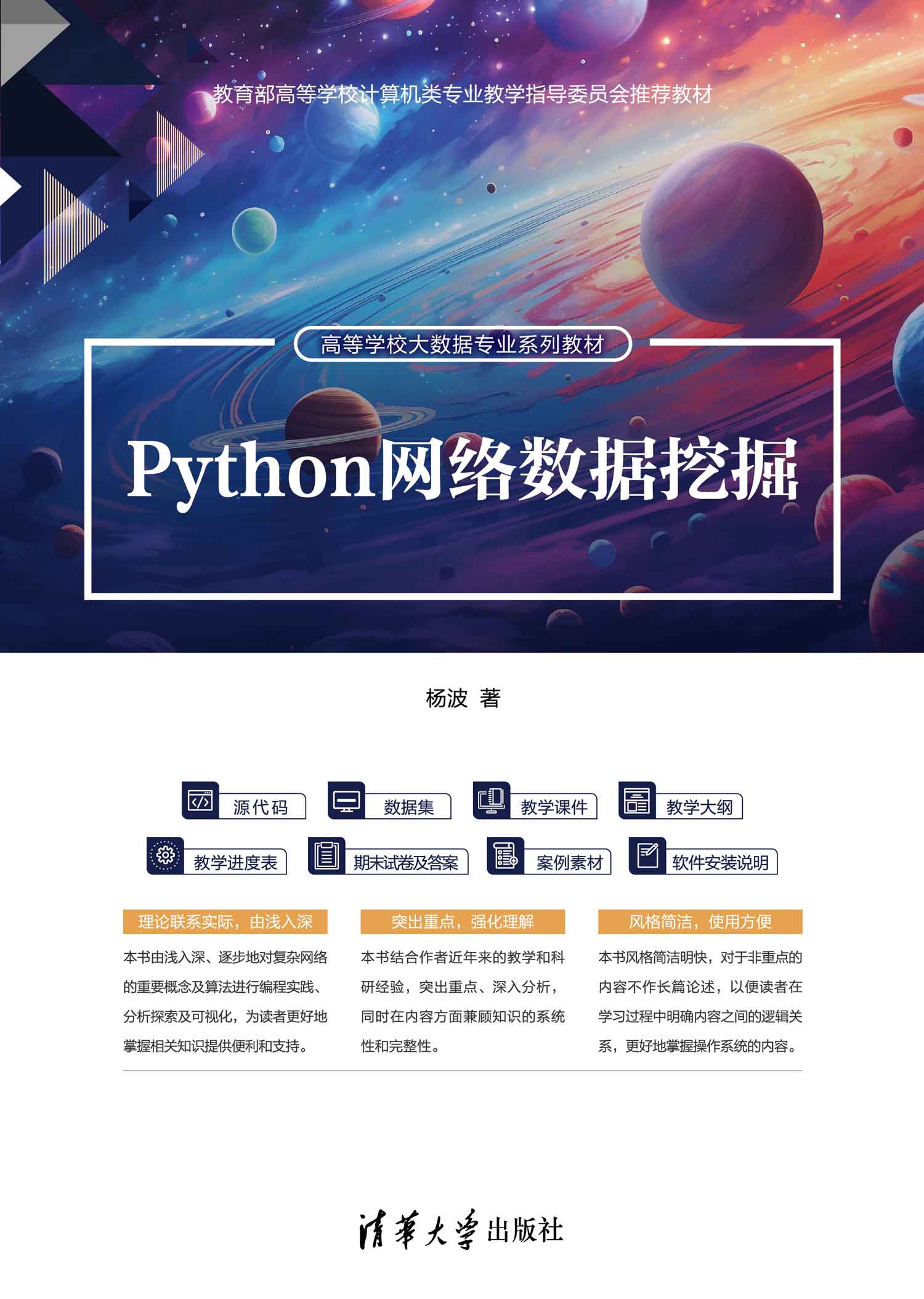 前言 党的二十大报告强调“必须坚持科技是第一生产力、人才是第一资源、创新是第一动力,深入实施科教兴国战略、人才强国战略、创新驱动发展战略,开辟发展新领域新赛道,不断塑造发展新动能新优势”。 复杂网络理论将对象和对象间的联系转换为节点和边加以描述,以图论为数学基础,融合概率论、信息论、博弈论、传播学、非线性动力学、图神经网络、随机过程、推荐系统、数据挖掘、统计物理和复杂系统等知识,已广泛运用到社交网络、Internet、WWW、引文网络、生物网络、金融网络、电力和交通网络等的研究中,逐步发展为研究事物相关性的重要手段和方法之一。 主要内容 本书强调抽象概念的实例化,理论和算法的程序化与可视化,以Python为基本编程工具,辅以NumPy、Matplotlib、NetworkX、igraph、PyTorch和PyG等扩展包,力求形象生动地展示网络数据挖掘的相关内容,使读者可以在短时间内上手开展学习和研究工作。 全书从图论开始,然后逐步介绍网络数据挖掘的各方面知识,共12章。 第1章图论基础,包括几个有趣的图论问题、图的定义和基本概念、图的路和连通性、树与生成树、平面图及其欧拉公式、图的表示和存储。第2章网络基本拓扑特性,包括稀疏性和连通性,度、度分布和度相关性,平均路径长度和网络效率,聚类系数和圈系数,网络子结构: kclique、环和模体。第3章节点重要性,包括无向网络节点重要性指标、有向网络节点重要性指标、节点重要性衡量标准。第4章社团探测,包括社团探测基础、凝聚算法、分裂算法、重叠社团探测算法、其他社团探测算法、社团探测检测标...