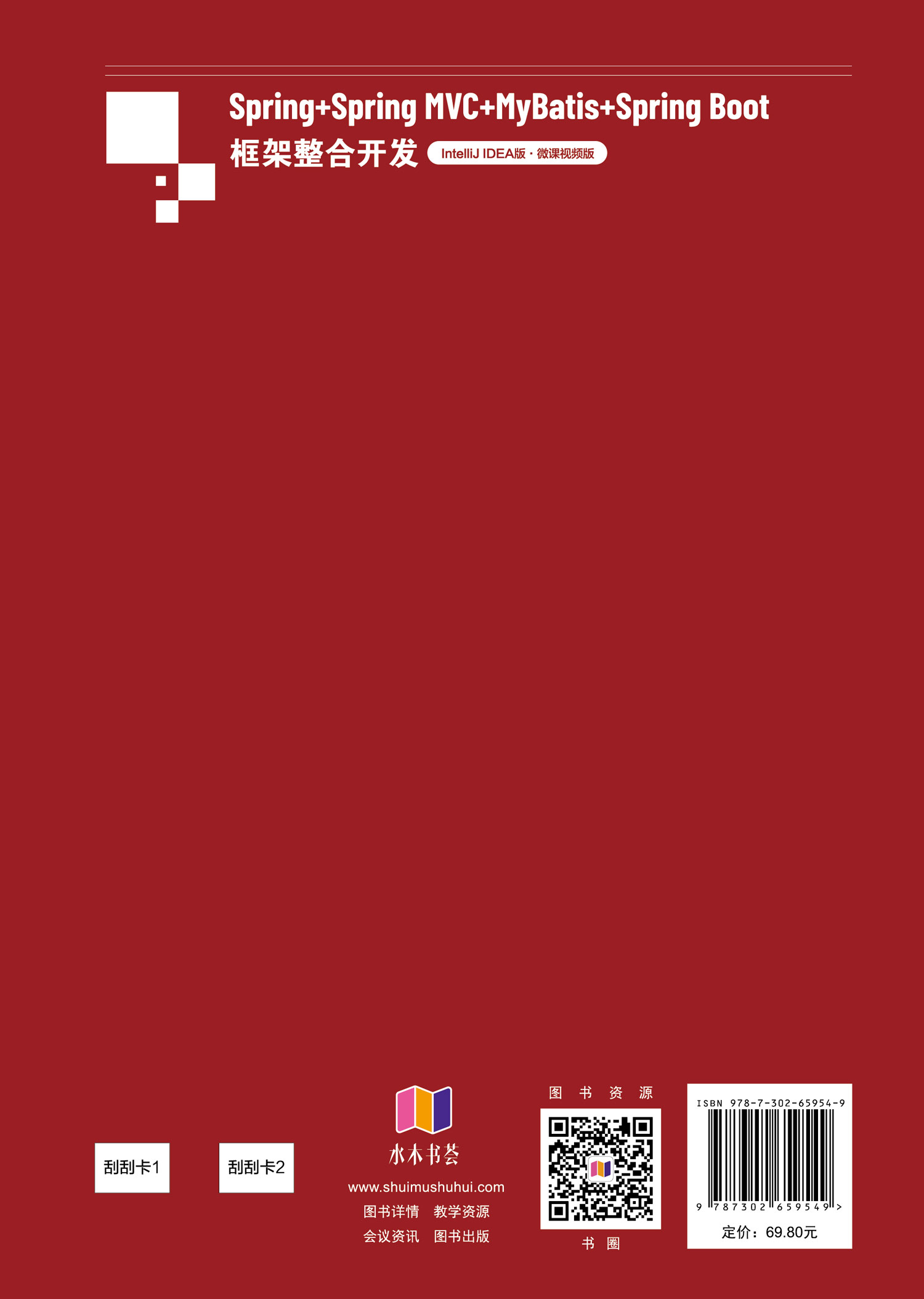 II 前言 党的二十大报告指出:教育、科技、人才是全面建设社会主义现代化国家的基础性、战略性支撑。必须坚持科技是第一生产力、人才是第一资源、创新是第一动力,深入实施科教兴国战略、人才强国战略、创新驱动发展战略,开辟发展新领域新赛道,不断塑造发展新动能新优势。高等教育与经济社会发展紧密相连,对促进就业创业、助力经济社会发展、增进人民福祉具有重要意义。 本书适合具有Java编程基础和Java Web相关知识的读者学习。 在IntelliJ IDEA + Tomcat 10开发环境下,本书使用Spring Framework 6.0、MyBatis 3.5.11、Spring Boot 3.0以及MyBatis-Plus 3.5.3.1详细讲解SSM、Spring Boot、MyBatis-Plus等框架的基础知识和使用方法。本书不仅介绍了SSM、Spring Boot、MyBatis-Plus等框架的基础知识,而且精心设计了大量实例。读者通过本书可以快速地掌握SSM、Spring Boot、MyBatis-Plus等框架的实践应用,提高Java EE应用的开发能力。 全书共20章,各章的具体内容如下: 第1章主要讲解Spring框架的基础知识,包括Spring框架的体系结构、核心容器、开发环境以及入门程序等内容。 第2章主要介绍Spring IoC的基本概念、Spring IoC容器以及依赖注入的类型等内容。 第3章对Spring中的Bean进行详细介绍,主要包括Spring Bean的配置、实例化、作用域、生命周期以及装配方式等内容。 第4章主要介绍AO...