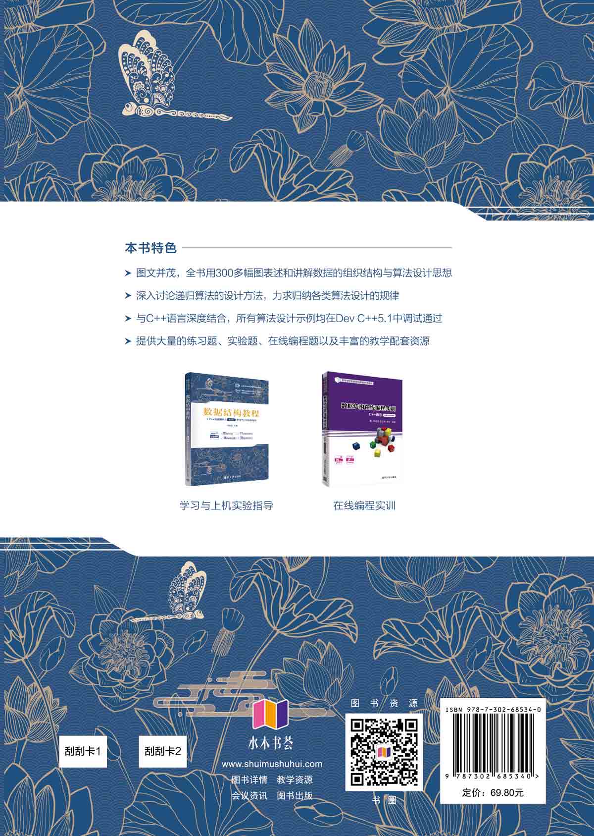 "本书系统地介绍了常用的数据结构以及查找和排序的算法,阐述了数据结构的逻辑结构、存储表示及基本运算,并采用C++语言描述数据组织和基本运算算法的实现,所有算法程序均在Dev C++5.1中调试通过。 全书既注重原理又注重实践,配有大量图表和示例,内容丰富,概念讲解清楚,表述严谨,逻辑性强,语言精练,可读性好。书中提供了丰富的练习题、上机实验题和在线编程题,配套的《数据结构教程(C++语言描述)(第3版)学习与上机实验指导》辅助教材中详细给出了本书所有练习题和实验题的解题思路和参考答案,《数据结构在线编程实训(C++语言)(全程视频讲解版)》辅助教材中详细给出了所有实战题和在线编程题的解题思路和参考答案(含全部题目的视频讲解)。 本书内容涉及的广度和深度符合普通高等学校计算机及相关专业培养目标的要求,配套教学资源丰富,可作为“数据结构”课程的教材,也可作为从事计算机软件开发和工程应用人员的参考书。 "