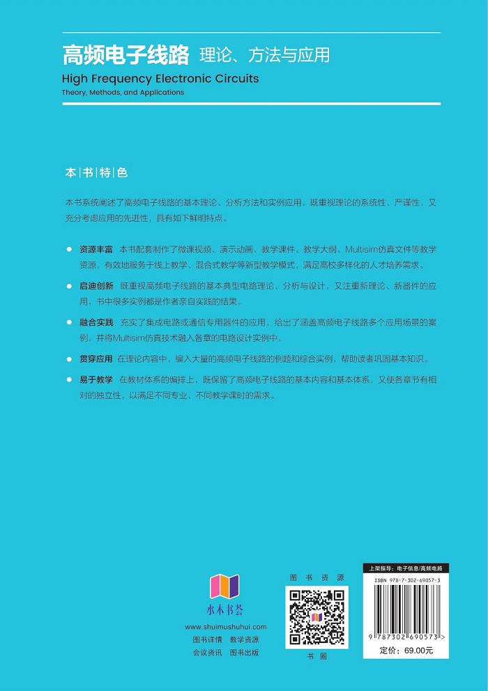 "本书系统阐述了高频电子线路的基本理论、分析方法和实例应用,既重视理论的系统性、严密性,又充分考虑应用的先进性,具有如下鲜明特点:
