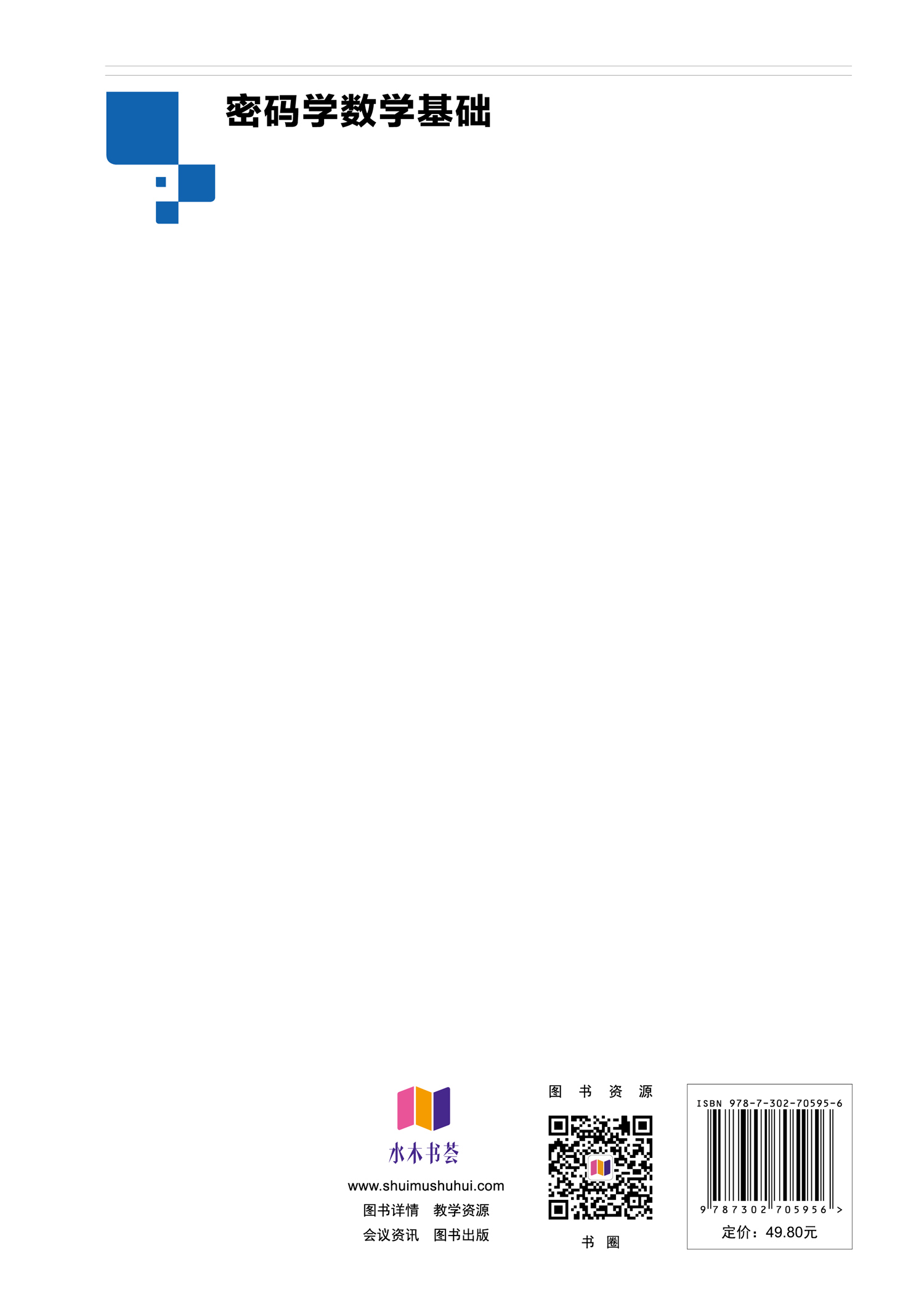 "本书系统地介绍了初等数论、抽象代数、椭圆曲线等密码学必不可少的数学理论与实用算法。本书秉持反向教学设计理念,立足密码学应用组织数学知识点,重实例、重应用结合,例题、习题丰富多样,还配有电子课件、知识点微视频等配套资源。 本书可作为信息安全、计算机科学与技术、通信工程、数学与应用数学等领域的本科生和研究生相关课程的教科书,也可作为从事信息安全、密码学和其他信息技术相关领域的科研与工程技术人员的参考书。 "