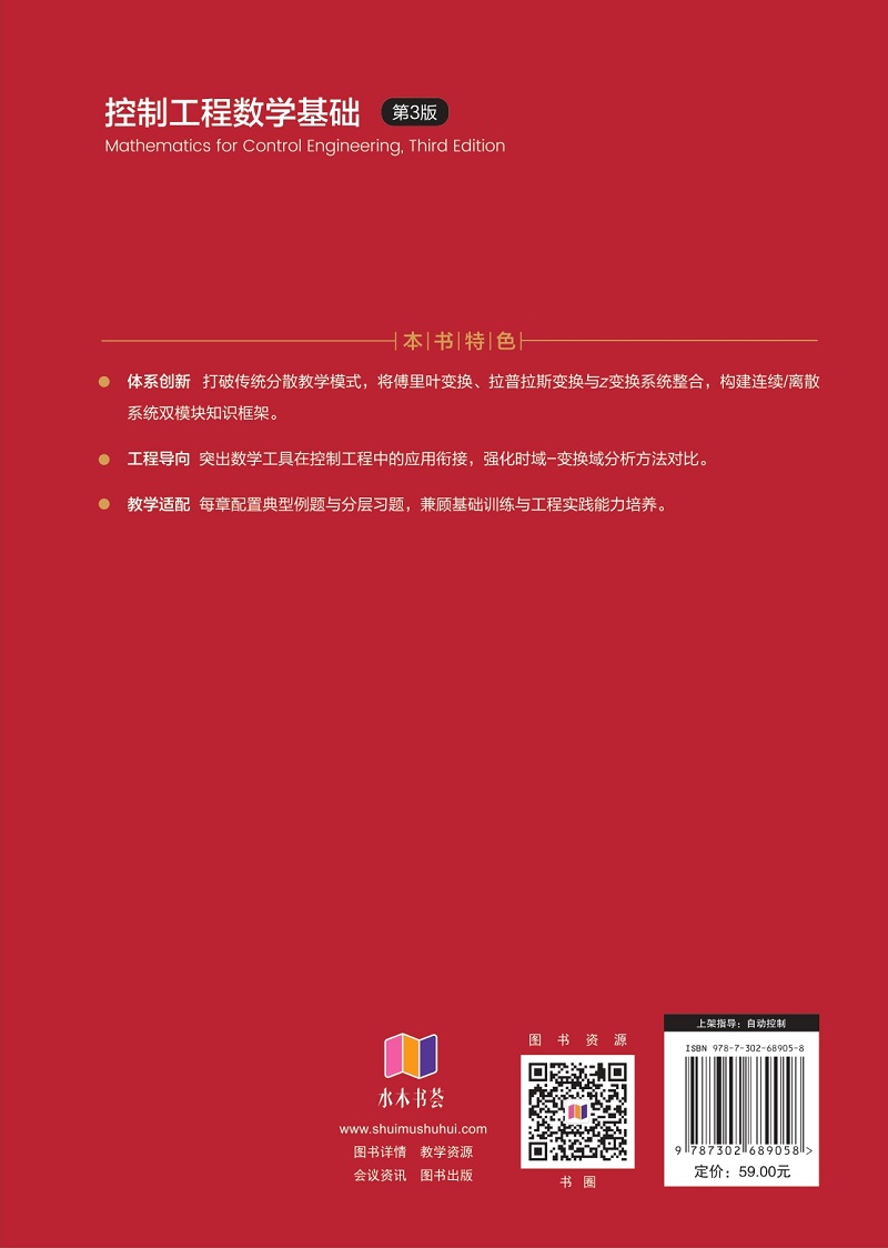 工程导向:突出数学工具在控制工程中的应用衔接,强化时域-变换域分析方法对比。