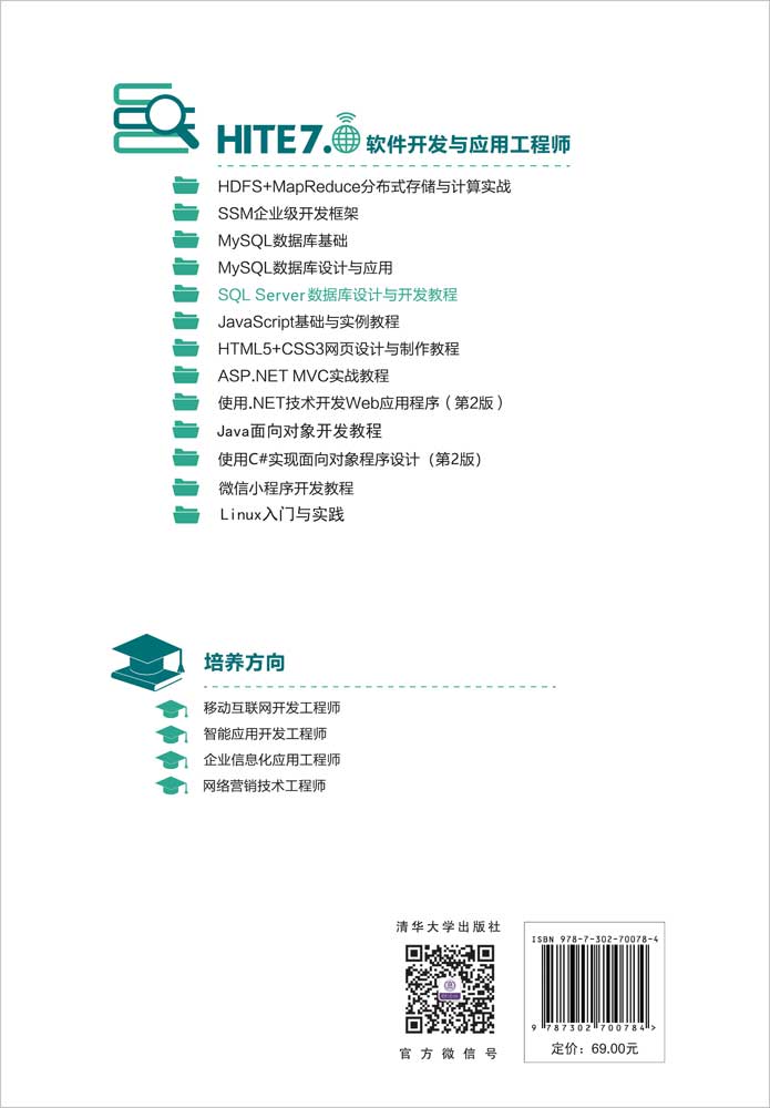 编 委 会 主 编: 余 剑  黄城宣  黎 泽  李 闯 副主编: 马雪皎  唐晨钧  刘舒桐  杨筱慧 编 委: 黄湘寒  李俊双  曾永添  农 铮   谢鸿稳  陈广寿  詹谨恒  夏 霖 王宇翾 主 审: 王 慧 前 言 随着信息技术的飞速发展,数据库技术已经成为信息系统的核心组成部分。SQL Server 作为一种广泛应用的数据库管理系统,以其强大的功能和灵活的扩展性,成为许多企业和开发人员的首选工具。SQL(Structured Query Language,结构化查询语言)的主要功能是与各种数据库建立联系并进行沟通,它是关系数据库管理系统的标准语言。SQL语句则用于执行任务,如更新数据库中的数据或从数据库中检索数据。一些常见的使用SQL的关系数据库管理系统包括Microsoft SQL Server、MySQL、PostgreSQL、MariaDB和Oracle。Microsoft SQL Server 2022是一款全面而强大的关系型数据库管理系统(Relational Database Management System,RDBMS),它提供了广泛的数据管理和分析功能,适用于企业级应用程序和数据仓库。SQL Server 2022经过改进引入了许多新特性,以应对不断演进的技术挑战和业务需求。 《SQL Server数据库设计与开发教程》属于广西壮族自治区“十四五”职业教育规划教材培育项目,采用工单式和技术手册式相结合的设计方案,可作为现场工程师人才培养用...