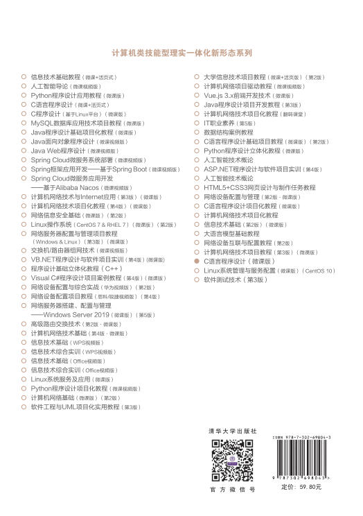 前言 在数字化时代背景下,编程技能已成为开启科技创新之门的关键。C语言作为一门历史悠久且具有深远影响力的编程语言,在计算机科学领域中占据着举足轻重的地位。 C语言的应用范围极为广泛,其在操作系统(如Windows、Linux)及各类嵌入式系统(如智能手机、智能家居设备)中扮演着不可或缺的角色。在游戏开发领域,C语言同样发挥着关键作用,它能够实现高效的图形渲染和游戏逻辑处理。此外,在科学计算、金融领域等,C语言也有广泛的应用,为复杂的数值计算和数据处理提供了强大的支持。 本书旨在为读者全面系统地介绍C语言程序设计,主要内容涵盖以下几个方面。 第1章概述了计算机语言的演进以及C语言的发展历程,阐述了C语言的特点,并使读者初步了解C语言的编程环境及其相关流程。 第2、3章从基础语法入手,详细讲解C语言的基本数据类型、常量和变量的定义及使用、运算符的运用、数据的输入/输出等。让读者对C语言的基本构成要素有清晰的认识,为后续的学习打下坚实的基础。 第4、5章深入阐述控制结构,包括选择结构(如if语句、switch 语句等)和循环结构(如while语句、do...while语句、for语句等)。通过大量实例,帮助读者掌握如何运用这些控制结构来实现程序的逻辑流程控制。 第6、8、9章涉及数组、指针、结构体等重要的数据结构,帮助读者处理大规模数据和复杂的数据关系,实现更强大的程序功能。 第7章介绍了函数的定义、调用和参数传递等知识,让读者学会将复杂的问题分解为一个个独立的函数模块,提高程序的可读性、可维护性和可扩展性。 ...