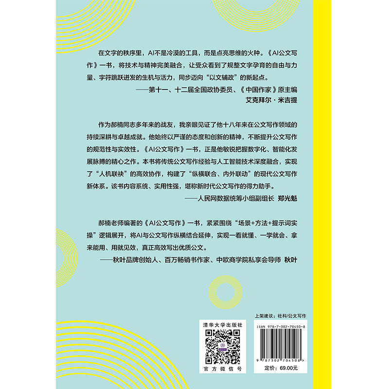 本书的较大亮点是将AI与公文写作进行纵横结合延伸,确保横向到边、纵向到底,有的放矢、剑指靶心。 在横向维度上,从制约每一类公文高质量呈现的瓶颈问题入手,深入探究AI在“懂意图、出思想、提高度、立标题、强逻辑、转书面、戒空洞、用数据、善提炼、抓复盘、找问题、挖亮点、除疑惑”等60余个关键支撑要素中发挥的核心功能作用; 在纵向维度上,将领导讲话、汇报、纪要、信息、通知等常用公文进行21项二次细分、逐个突破,实现AI一键生成,助力提高公文写作的快速完成率、正确率、准确率、领导满意率、一次通过率。