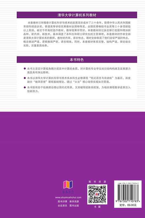 2. 本书以清华大学计算机科学与技术系本科生必修课程“形式语言与自动机”为基石,深度融合“编译原理”课程基础理论,通过“文法”核心纽带实现知识贯通。