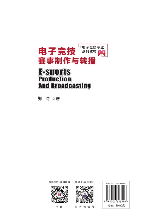 本书是电子竞技专业系列教材规划中的第二本,在专业性、实践性和学术性方面都具有一定的深度。 本书科学性地定义了电子竞技赛事制作与转播的特点与概念,提出了创新性的理论——电子竞技赛事制 作与转播架构,系统性地梳理了电子竞技赛事制作与转播的运作模式,对电子竞技赛事制作与转播各环 节的运作原理进行了模型化的阐述,并对电竞赛事制作与转播的未来发展趋势进行了预测。 本书对电子竞技赛事制作与转播的工作模块、工作模式、转播标准与流程进行了深入浅出的讲解, 能够让从未了解过赛事制作与转播相关知识的人迅速掌握其特点与流程。同时,本书提出的理论、架构 和方法也会对其他制作与转播行业带来一定的借鉴和启发。