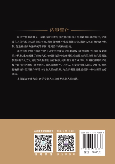 前  言 1965年是我医学探索漫漫征途中一个具有特殊意义的起点。 我怀揣对未知领域的好奇与传统医学的敬畏,毅然投身针刺镇痛 原理的研究,开启融合中西的科研壮旅。随后,我肩负国家重 托,在北京医学院(现北京大学医学部前身)组建针刺镇痛科研 团队——起初仅寥寥数人,而后逐步发展壮大,汇聚了 93名博 士生、19位博士后及数以百计的合作者。在这片科研沃土上,我 们深耕针刺基础与临床研究,成功破解了一个又一个核心密码。 我们的研究揭示了针刺镇痛的原理和治疗慢性疼痛、孤独症和不 孕不育的机制。 我们的研究成果明确证实:针刺通过调控脑功能与神经内 分泌系统纠正疾病状态,恢复人体健康稳态,其调控维度涵盖神 经纤维的电信号、神经递质及神经通路。针刺调控疾病的关键是 神经递质,既包含阿片类,也包含非阿片类;且不同频率的电刺 激会诱导释放不同的神经递质:2Hz的电刺激可促进脑啡肽释放,100Hz的刺激则释放强啡肽。此外,连续4小时的电刺激会促使 抗阿片物质胆囊收缩素(CCK)释放,激活 CCK通路可导致抗阿 片作用,进而引发针刺耐受。这些成果不仅为针刺疗法国际化提 供了核心理论支撑,更推动了针刺疗法成功进入西方医疗体系。 科研探索从未停歇,而我深知:科研成果的价值不仅在于理 VI经皮穴位电刺激——开启身体自愈力的钥匙 论突破,更在于临床转化以造福患者。基于多年研究积累,我与 北京航空航天大学刘亦鸣教授紧密合作,成功研发经皮穴位电刺 激仪(神经调控仪)并申请专利。这一成果是基础与临床研究的 智慧结晶——它精准模拟针刺疗法,通过...