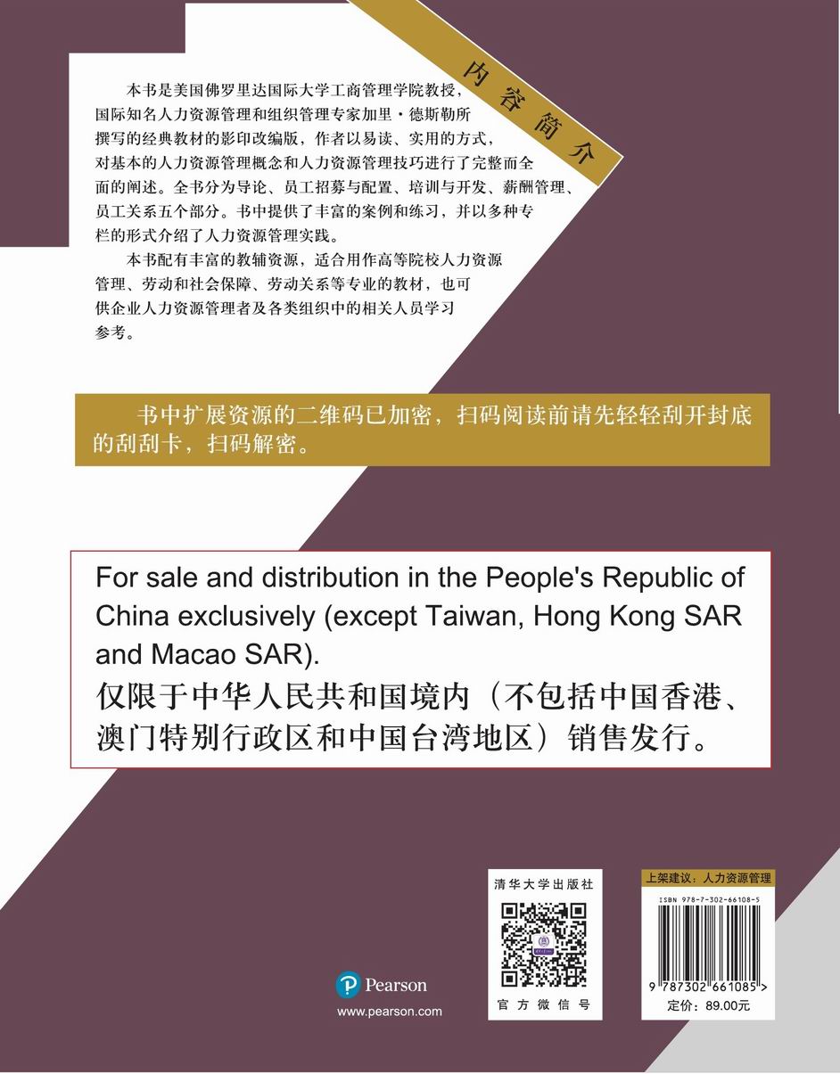 [美]加里·德斯勒(Gary Dessler),美国佛罗里达国际大学工商管理学院教授,国际著名人力资源管理和组织管理专家。长期致力于人力资源管理和组织管理领域的研究,在Academy of Management Executive,SAM Advanced Management Journal等国际一流刊物上发表多篇学术论文。撰写的《人力资源管理》一书居同类书销量之首,被翻译成10多种文字在多个国家和地区出版。