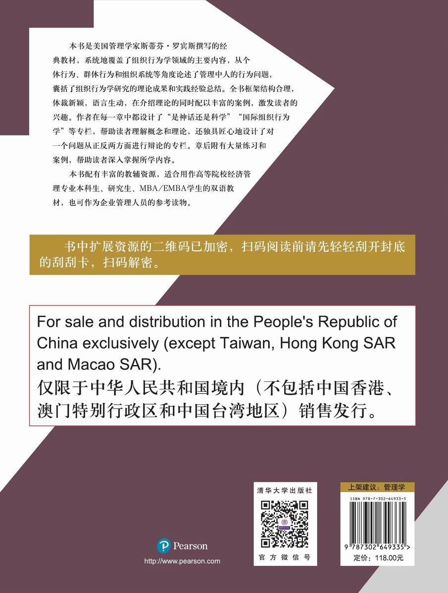 《组织行为学(英文版·第18版)》是美国管理学家斯蒂芬·罗宾斯教授所撰写的经典教材,系统地覆盖了组织行为学领域的主要内容,从个体行为、群体行为和组织系统等角度论述了管理中人的行为问题,囊括了组织行为学研究的理论成果和实践经验总结。全书框架结构合理,体裁新颖,语言生动,在介绍理论的同时配以丰富的案例,激发读者的兴趣。作者在每一章中都设计了“是神话还是科学”“国际组织行为学”等专栏帮助读者理解概念和理论,还独具匠心地设计了对一个问题从正反两方面进行辩论的专栏。章后附有大量练习和案例,帮助读者深入掌握所学内容。 《组织行为学(英文版?第18版)》配有丰富的教辅资源,不仅适合用作高等院校经济管理专业本科生、研究生、MBA/EMBA学生的双语教材,也可作为企业管理人员的在职学