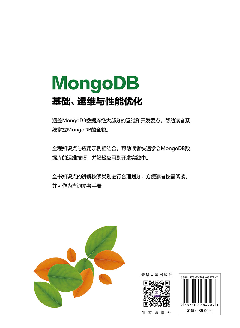 (2)涵盖MongoDB数据库绝大部分的运维和开发要点,帮助读者系统掌握MongoDB的全貌。