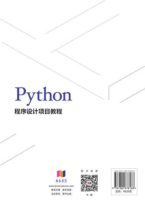 前言 Python是一种简单易学、功能强大的编程语言,因其广泛的应用领域和强大的社区支持,受到了广大编程爱好者和专业开发者的青睐,长期位于TIOBE编程语言排行榜第一位。 本书作为职业本科大数据工程技术专业的系列教材之一,以职业本科学生编程能力培养需求为导向,采用任务引领的教学模式,通过一系列精心设计的项目任务,引导学生逐步掌握Python编程的基本知识和技能。全书在内容的组织上,按照编程语言学习的一般过程,由浅入深,设置了11个项目。在任务的选取上,按照贴近工作实际、任务与知识技能相适配的原则,设置了24个任务,涵盖了Python编程的核心知识、技能点。 项目1通过完成打印树形图案的任务,介绍Python编程环境的搭建、熟练使用Python开发工具编写简单的代码,以及将代码编译成可执行文件。 项目2通过完成打印简单名片、传统长度单位转换、比较正方形和圆的面积与周长等任务,介绍Python的基础语法知识,涵盖代码格式规范、标识符和关键字的使用、数据的表示方法、数据的输入与输出方法、数字类型的区分、常量的定义与数字类型转换方法,以及常用运算符的使用等内容。 项目3通过完成快递计费、用户登录检测、数据加密、猜价格赢折扣等任务,介绍Python程序设计的基本流程,选择判断语句、循环控制语句和跳转语句等常用流程控制语句的基本语法以及使用方法,以及语句之间的相互嵌套使用等内容。 项目4通过完成输出英文歌词、用户名密码提取等任务,介绍Python字符串格式化输出、字符串查找与替换、字符串分隔与拼接、字符串大小写转换、字符串对齐、正则表达式等内容。 项目5通过完成演...