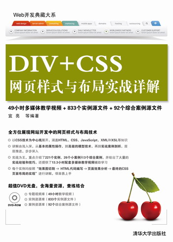 本书在编写过程中涉及HTML、CSS、JavaScript、XML和XSL等相关知识,但一直围绕CSS技术这条中心线展开。本书讲解由浅入深,循序渐进,从基本的属性操作到高级的模型技术,再到案例剖析。为了让理论知识和实践更好地结合,书中给每个知识点都配有实例,并对每个实例进行剖析,便于读者领会,达到举一反三的效果。另外,为了让读者更加直观、高效地学习,作者专门录制了大量多媒体教学视频。这些视频与本书涉及的源程序均收录于配书光盘中。 本书共21章,分为3篇。第1篇DIV+CSS布局速成,介绍Web标准语言、CSS入门与速成、CSS文字样式设计与速成、CSS图像样式设计与速成、CSS表格样式设计与速成、CSS列表样式设计与速成、CSS表单样式设计与速成、其他CSS样式设计、CSS Sprite技术、CSS滤镜的使用和CSS浏览器样式兼容;第2篇DIV+CSS布局实战演练,介绍广告设计、公告列表设计、搜索条设计和单击控件设计;第3篇Web开发进阶,介绍JavaScript功能层控制、DOM与XML应用、静态和动态网站建站的方法、搭建本地服务器和快速构建本地网站。 本书不但适合没有DIV+CSS开发基础的学生、学员以及广大爱好者阅读,还适合使用DIV+CSS进行开发的各类工程技术人员阅读。学习本书,相信读者会对DIV+CSS有更深刻的理解。