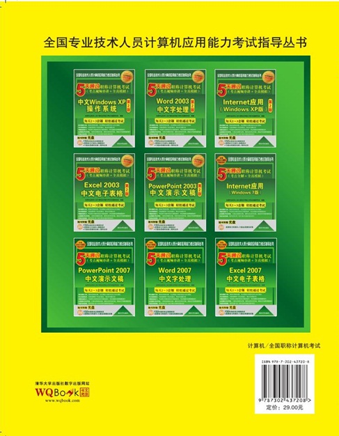 前 言 “全国专业技术人员计算机应用能力考试”又称“全国职称计算机考试”,是国家人力资源和社会保障部在全国范围内推行的一项全国性考试,并将考试成绩作为评聘专业技术职务的条件之一。 本丛书为没有太多时间和精力来准备考试、需要考前突击的考生而编写,使考生在5天内通过强化训练来顺利通过考试。 本丛书目前已推出12种,具体如下。 《5天通过职称计算机考试(考点视频串讲+全真模拟)——中文Windows 7操作系统》 《5天通过职称计算机考试(考点视频串讲+全真模拟)——中文Windows XP操作系统》(第2版) 《5天通过职称计算机考试(考点视频串讲+全真模拟)——Word 2007中文字处理》 《5天通过职称计算机考试(考点视频串讲+全真模拟)——Word 2003中文字处理》(第2版) 《5天通过职称计算机考试(考点视频串讲+全真模拟)——Excel 2007中文电子表格》 《5天通过职称计算机考试(考点视频串讲+全真模拟)——Excel 2003中文电子表格》(第2版) 《5天通过职称计算机考试(考点视频串讲+全真模拟)——PowerPoint 2007中文演示文稿》 《5天通过职称计算机考试(考点视频串讲+全真模拟)——PowerPoint 2003中文演示文稿》(第2版) 《5天通过职称计算机考试(考点视频串讲+全真模拟)——Internet应用(Windows 7版)》 《5天通过职称计算机考试(考点视频串讲+全真模拟)——Internet应用(Windows XP版)》(第2版) ...