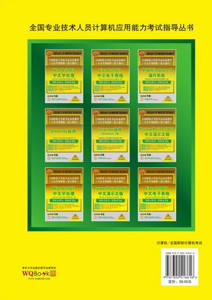 前 言 “全国专业技术人员计算机应用能力考试”又称为“全国职称计算机考试”,是国家人力资源和社会保障部在全国范围内推行的一项全国性考试,并将考试成绩作为评聘专业技术职务的条件之一。 我们在多年的考试培训和教学中发现,许多考生尽管对自己的计算机操作能力十分自信,却遭遇了屡战屡败的情况。推究其原因,主要是因为掌握的知识覆盖面太窄,缺少有针对性的、全面性的、实战性的练习。 本丛书依据最新的《全国专业技术人员计算机应用能力考试大纲》编写,知识覆盖考试大纲中的所有考点,在光盘中设置了手把手对各试题操作方法的演示、按照大纲顺序的题库练习和解题演示,以及12套试卷(可查看错题的解题演示),帮助考生最简单、最省时、最省力地通过考试。 本丛书目前已推出14本图书,具体如下。 《全国职称计算机考试标准教程(全真考场模拟+超大题库)——中文Windows 7操作系统》 《全国职称计算机考试标准教程(全真考场模拟+超大题库)——中文Windows XP操作系统》 《全国职称计算机考试标准教程(全真考场模拟+超大题库)——Word 2007中文字 处理》 《全国职称计算机考试标准教程(全真考场模拟+超大题库)——Word 2003中文字 处理》 《全国职称计算机考试标准教程(全真考场模拟+超大题库)——Excel 2007中文电子表格》 《全国职称计算机考试标准教程(全真考场模拟+超大题库)——Excel 2003中文电子表格》 《全国职称计算机考试标准教程(全真考场模拟+超大题库)——PowerPoint 2007中文演...