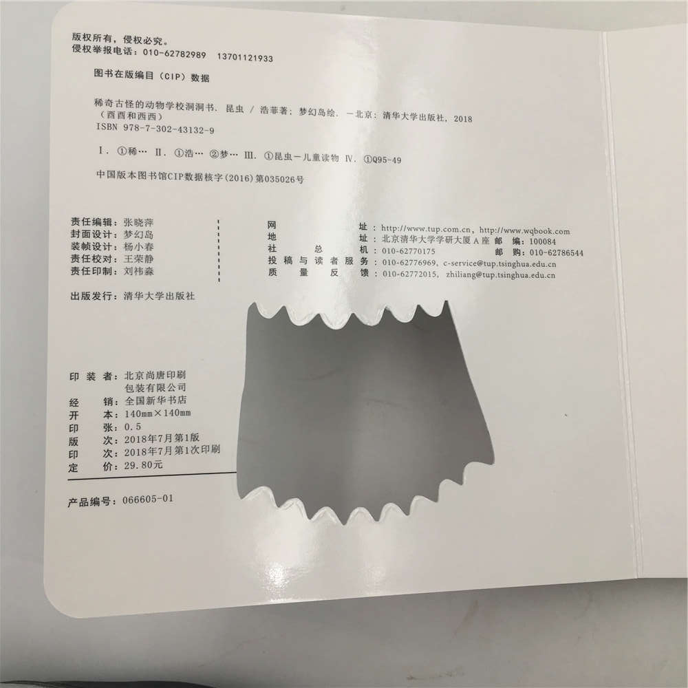 3.翻翻、抠抠的精细动作,锻炼宝宝的动手操作能力。当宝宝开始喜欢抓小物品,抠洞洞,那就是到了精细动作发展的敏感期。封面上怪物的大牙齿洞洞,书中小动物身上的圆洞洞,都可以充分调动宝宝的好奇心,翻翻抠抠玩不停。