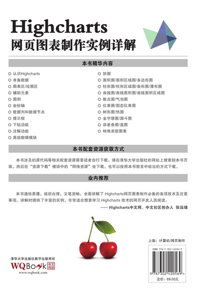 本书内容清晰易懂,组织合理,文笔流畅,全面讲解了 Highcharts 图表制作必备的各项参数及注意事项,作者讲解时结合了丰富的实例,非常适合想要了解和学习 Highcharts 网页图表制作的人员阅读。