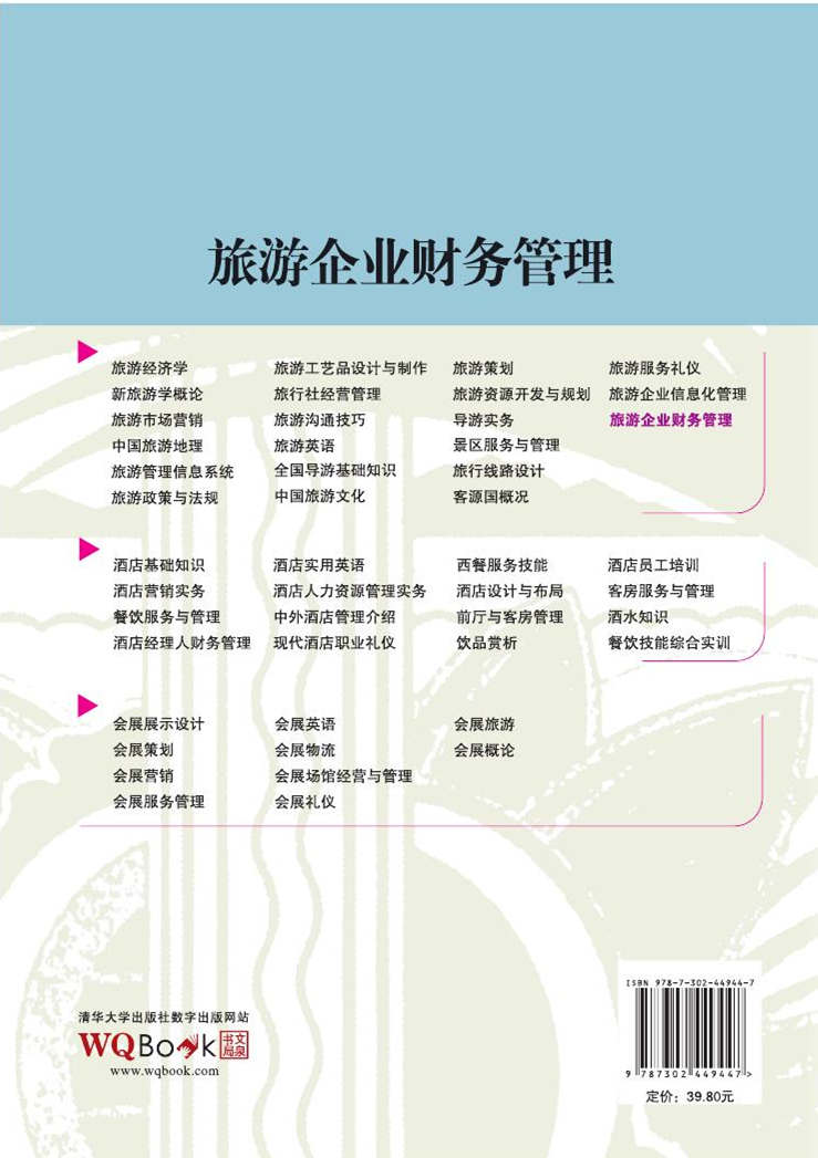 本书以旅游企业资金流动为主线,将财务管理按内容划分为旅游企业财务管理概论、货币时间价值、旅游企业筹资管理、旅游企业投资管理、旅游企业营运资金管理、旅游企业成本管理、收入管理与股利政策、旅游企业财务报表分析,共8章。每章都由专门的引导案例引出,中间穿插大量的拓展知识和案例分析,增强知识的趣味性,便于读者理解和掌握。书中数据均选取近两年的较新数据,增强内容的时效性。每节后面都设有评估练习,便于读者对知识的理解与考核。 本书可作为应用型本科和高职高专院校旅游管理专业财务管理课程的教学用书,也可用于旅游企业管理人员培训和自学用书。