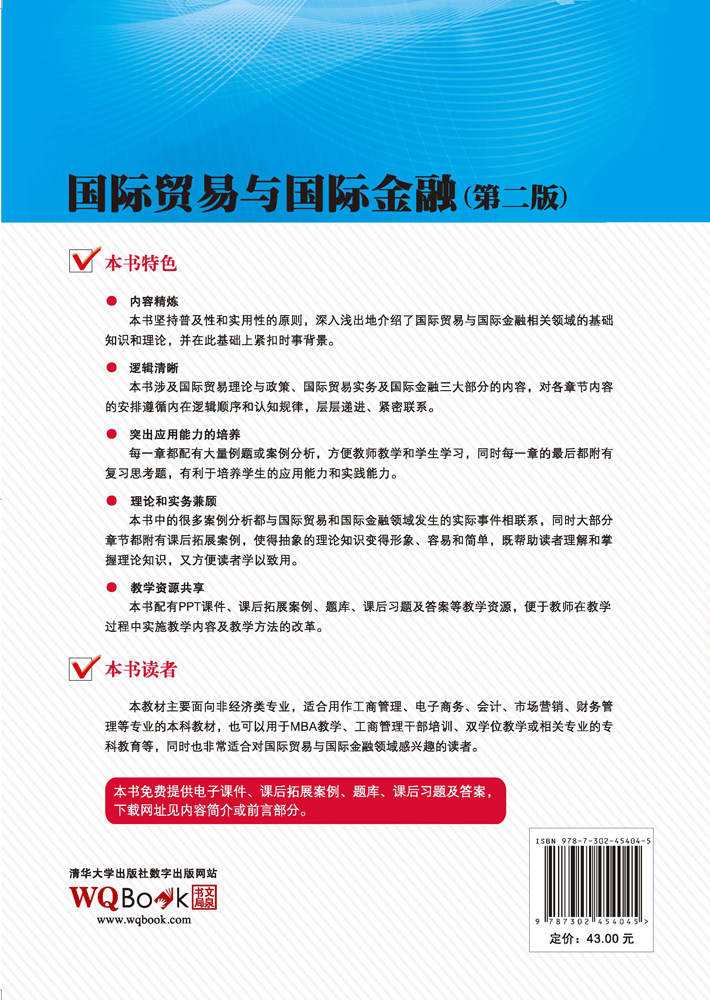 本书主要面向非经济类专业,适合用作工商管理、电子商务、会计、市场营销、财务管理等专业的本科教材,也可以用于MBA教学、工商管理干部培训、双学位教学或相关专业的专科教育等,同时也非常适合对国际贸易与国际金融领域感兴趣的读者。