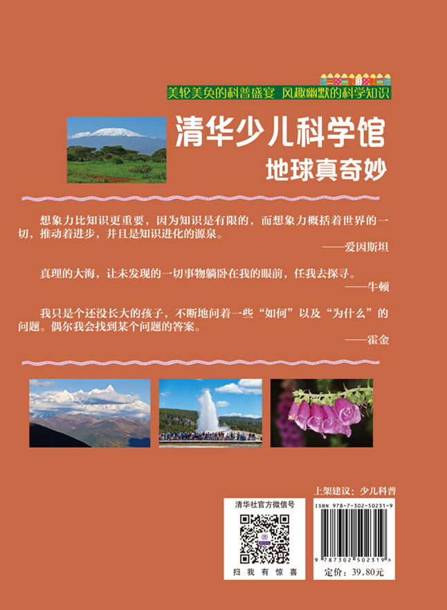 在浩瀚无垠的宇宙空间,有一个人类赖以生存的蔚蓝色星球,她的名字叫作地球。从她“出生”的那天开始,就带着与生俱来的很多奥秘,在时空的不断变换中,带给人们无限遐想。 四季轮回更替,草木荣枯黄绿,大海波澜壮阔,溪流和缓静谧,地球孕育了大自然的一切美好与神奇,让我们人类在“地球母亲”的温暖怀抱里,与万物共命运同呼吸,享受地球的恩赐,感叹大自然的神奇。 现代科学技术的飞速发展已经证明了,地球这颗老行星起源于原始太阳星云,如今已经是46亿岁的高龄了。然而,面对地球丰富的奥秘,人们已经探明的还只是很小的一部分,更多的还在等待人们去发掘,去证实。那么,朋友们,就让我们的思想插上探秘的翅膀,在充满幻想的天空尽情翱翔……坚持不懈,勇往直前,去解开更多地球的秘密吧。 本书内容依托科学事实,将科学现象用通俗易懂、妙趣横生的笔法进行叙述和表达,带你揭开地球独特构造的神秘面纱,领略令人困惑的自然异景和人神莫辨的山海奇观;探索深不可测的大洋之底;领略地球那忽冷忽热的“坏脾气”。让你在奇幻沙漠之旅中,与从未谋面的荒野神秘物种惊喜相遇。 也许,你会在不经意间,在脑海中想象地球诞生之初是什么样子;也许,你对幽深广阔的大洋之底究竟是一个怎样的世界有着浓厚的兴趣。那么不妨通过这本书来洞悉地球的神秘。