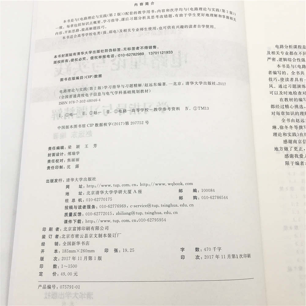 前言 电路分析课程是电子、电气类专业的主干技术基础课程,目前国内工科院校的全部电类及相关专业都在不同深度和层次上开设了这门课程,并将其确定为必修平台课,该课程理论严密、逻辑综合性强,有广阔的工程背景。 本书是与《电路理论与实践(第2版)》配套的教学参考书,主要是为学生和广大自学读者编写的。全书共14章,次序安排与《电路理论与实践(第2版)》一致。重点强调电路分析技巧,使读者具有一定的综合应用能力,巩固所学理论,训练实践技能,培养严谨的科学作风。通过习题演练,让读者体会电路理论,深入巩固和掌握电路的基本知识,学以致用; 也可以及时地检查对所学知识的掌握程度,以便更好地继续深入学习,加深理解。 在教材的编写过程中,力求做到深入浅出、通俗易懂,便于学生阅读和自学,每章的习题都经过精心挑选,合理安排。选择题考查对基础知识的掌握程度,题目不难,学生可以自查对每章知识的理解程度; 问答题有一定的难度,可以起到提高的作用。 全书由赵远东执笔,并负责整个教材的结构和组织安排。吴大中、周俊萍、夏景明、单慧琳、徐冬冬等撰写了部分内容,在此向他们表示衷心感谢。接下来还将积极准备制作《电路理论和实践》在线练习和考试系统,方便学生练习提高。 感谢南京信息工程大学对本书出版所给予的帮助。同时吴琴、李春彪、张闯对书中一些地方做了更正,在此一并表示感谢。 感谢我爱人及全家的全力支持,他们对该书的创作给予许多帮助。 限于编者水平,书中不妥之处在所难免,恳请读者批评指正。 赵远东 2017年5月于南京信息工程大学