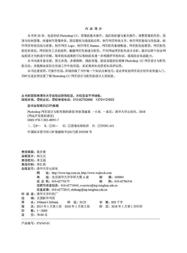 本书在编排上紧密结合深入学习网页配色技术的先后过程,从Photoshop软件的基本操作开始,带领大家逐步深入地学习各种网页配色的应用技巧,侧重实战技能,使用简单易懂的实际案例进行分析和操作指导,让读者读起来简明轻松,操作起来有章可循。