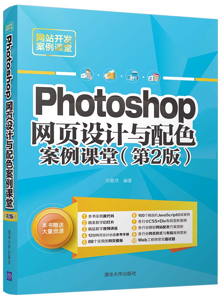 前 言 “网站开发案例课堂”系列图书是专门为办公技能和网页设计初学者量身定制的一套学习用书,涵盖高效办公、网站开发、数据库设计等方面。整套书具有以下特点。 前沿科技 无论是网站建设、数据库设计还是HTML5、CSS3,我们都精选较为前沿或者用户群较大的领域进行介绍,帮助读者认识和了解最新动态。 权威的作者团队 组织国家重点实验室和资深应用专家联手编著该套图书,融合丰富的教学经验与优秀的管理理念。 学习型案例设计 以技术的实际应用过程为主线,全程采用图解和同步多媒体结合的教学方式,生动、直观、全面地剖析使用过程中的各种应用技能,降低难度,提升学习效率。 为什么要写这样一本书 Photoshop CC在网页设计和配色方面的应用越来越普遍,包括版面设计,按钮的制作及应用,Banner和导航条的制作,网页广告制作,文字特效设计,网页其他组成部分的设计和制作等内容。对初学者来说,实用性强和易于操作是目前最大的需求。为此,本书主要面向想学习网页前台设计和配色的初学者,可以让初学者入门后快速提高实战水平。 本书特色 零基础、入门级的讲解 无论您是否从事计算机相关行业,无论您是否接触过网页配色,都能从本书中找到最佳起点。 超多、实用、专业的范例和项目 本书在编排上紧密结合深入学习网页配色技术的先后过程,从Photoshop软件的基本操作开始,带领大家逐步深入地学习各种网页配色的应用技巧,侧重实战技能,使用简单易懂的实际案例进行分析和操作指导,让读者读起来简明轻松,操作起来有章可循。 随时检测自己的学习成果 大部分章节中,均提...