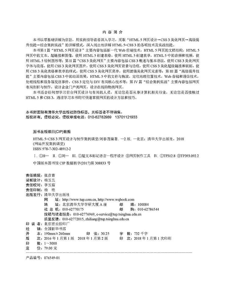 本书在编排上紧密结合深入学习网页制作技术的先后过程,从HTML 5的基本概念开始,逐步带领大家深入地学习各种应用技巧,侧重实战技能,使用简单易懂的实际案例进行分析和操作指导,让读者读起来简明轻松,操作起来有章可循。