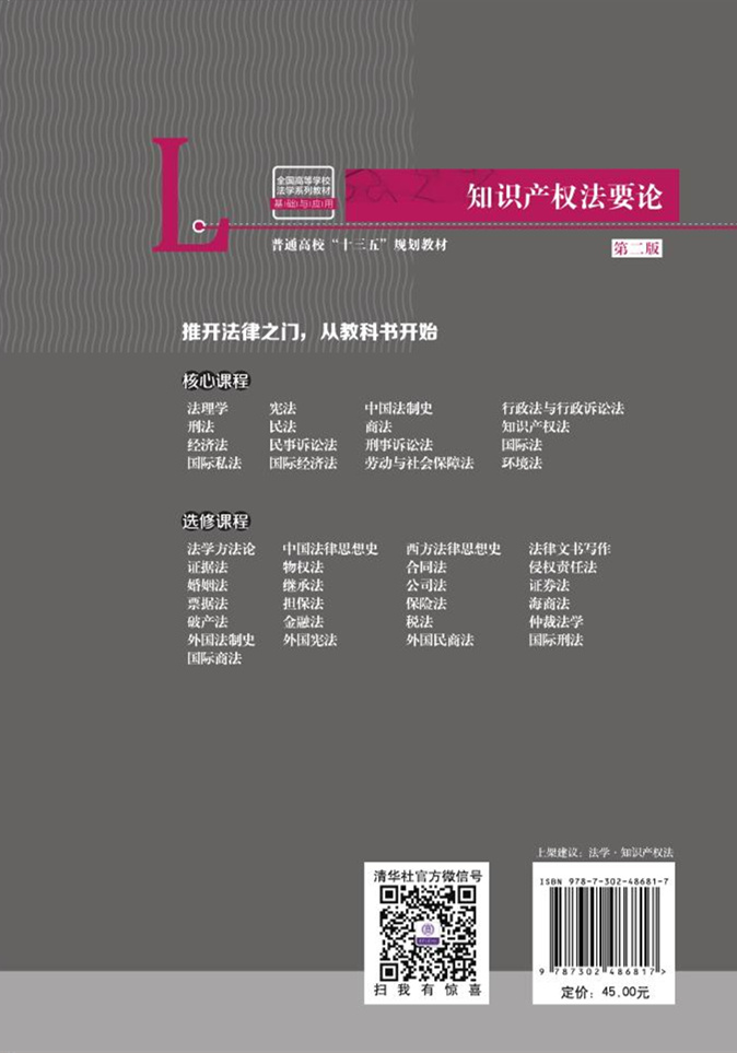 本书以简洁明快的文笔、易于理解的章节构成,完备而细致地论述了知识产权法的要点。本书理论观点的核心是知识产权法学具有政策性强、实用性高、国际性广的特点,应当顺应经济发展的需要,积极调整知识产权的创造机制、利用机制和保护机制,促进经济社会健康发展。基于此观点,本书对著作权法、专利法及商标法等法律展开了多维度、近距离的透析,将法条解释与判例研究相结合、比较研究与本土研究相结合。读者在往返于理论与实践之间的同时可以自然而然地感触知识产权法学的脉络。