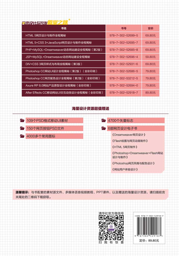 海量资源,辅助学习。提供立体化的学习资源:所有案例的素材、源文件;多媒体语音视频教程;与教学配套的PPT课件。