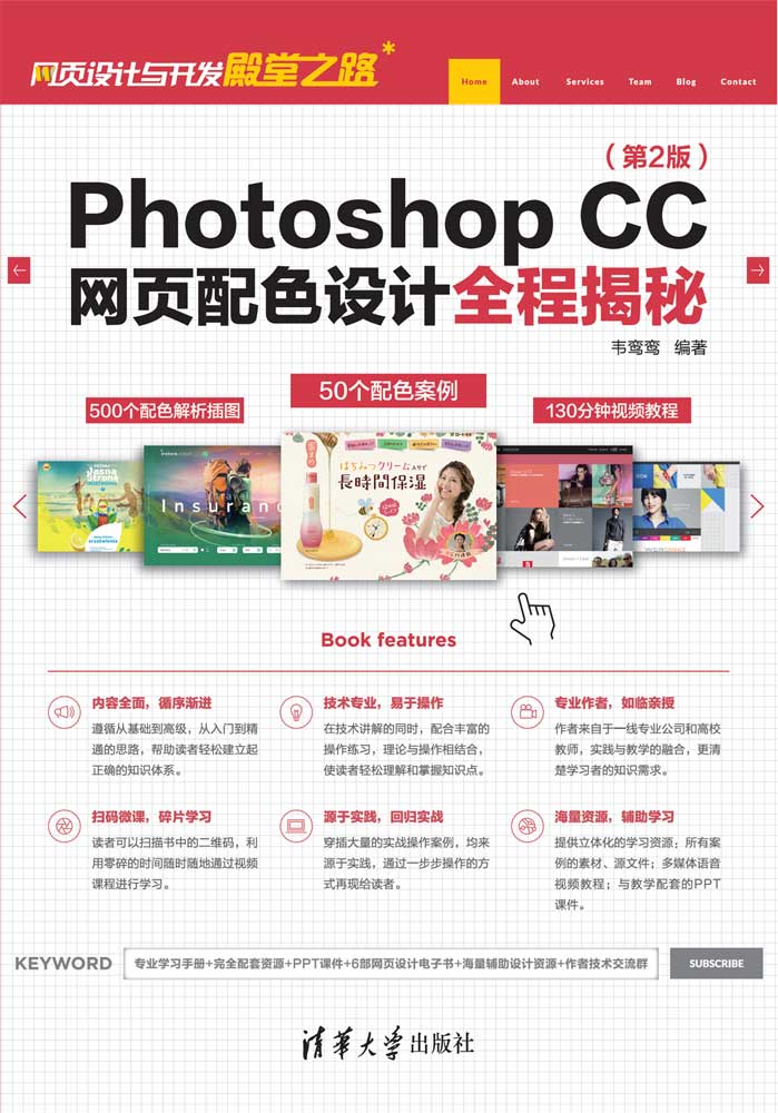 《Photoshop CC网页配色设计全程揭秘(第2版)》是一本关于网页配色设计的经典之作,以Photoshop CC为设计工具,对网页设计的配色技巧和原理进行了全面、细致的剖析。 《Photoshop CC网页配色设计全程揭秘(第2版)》首先从理论方面介绍了网页配色的一些基础知识,包括色彩基础知识、网页配色要求和规范、网页配色的基本方法、网页配色的选择标准、网页配色的色彩情感等内容,然后着重选择了7 种常用的色系,分别对它们的色彩意象进行详细分析,配合配色案例的讲解,使读者在掌握软件功能的同时迅速提高网页配色效率,极大地提高从业素质。 《Photoshop CC网页配色设计全程揭秘(第2版)》结构清晰,案例经典,技术实用,适合网页配色设计初、中级读者,包括广大网页设计爱好者、网页设计工作者,也可以作为高等院校网页配色设计课程的教材。
