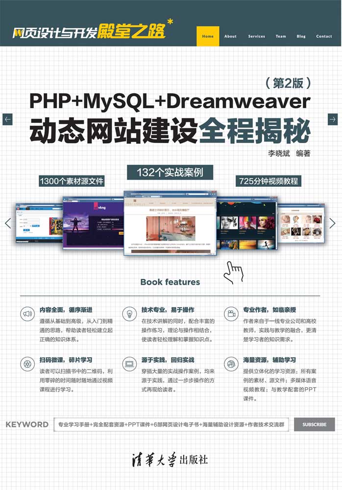 前言 随着科技的迅猛发展,网络在人们的生活中占据了重要的地位,无论是购物、学习、娱乐,还是远程教育,都可以通过网络实现。网络看似复杂,其实并不然,无论是多么复杂多变的网站都是由不同的网页组成的。所以,只要我们在了解网页设计理念的同时灵活地掌握网页设计的一系列软件,那么设计出一个完整的网站是一件很容易的事情。 《PHP+MySQL+Dreamweaver动态网站建设全程揭秘(第2版)》由具有丰富网页设计经验的设计师编写,以Dreamweaver CC 为工具,结合PHP语言及MySQL数据库的应用,为读者详细地剖析了PHP动态网站的开发技术和方法。从初学者的角度出发,通过由浅入深的方式详细地介绍PHP 网站开发的流程,让读者能够更全面地了解Dreamweaver+PHP+MySQL 开发网站的全部内容,从而达到学以致用的目的。《PHP+MySQL+Dreamweaver动态网站建设全程揭秘(第2版)》将PHP 和MySQL 与Dreamweaver 相结合,使读者能够轻松地了解原始程序代码与Dreamweaver 之间的关系。 为了能够让读者清晰地了解每章的重点内容,《PHP+MySQL+Dreamweaver动态网站建设全程揭秘(第2版)》为每一章的知识点都配备了相应的实战案例,通过知识点与案例相结合,并在其中穿插提示点拨,为读者全面、系统地介绍使用Dreamweaver+PHP+MySQL 开发动态网站的方法和技巧。通过对《PHP+MySQL+Dreamweaver动态网站建设全程揭秘(第2版)》的学习,希望能够提高读者阅读程序代码和编写代码的能力,并且可以利用Drea...
