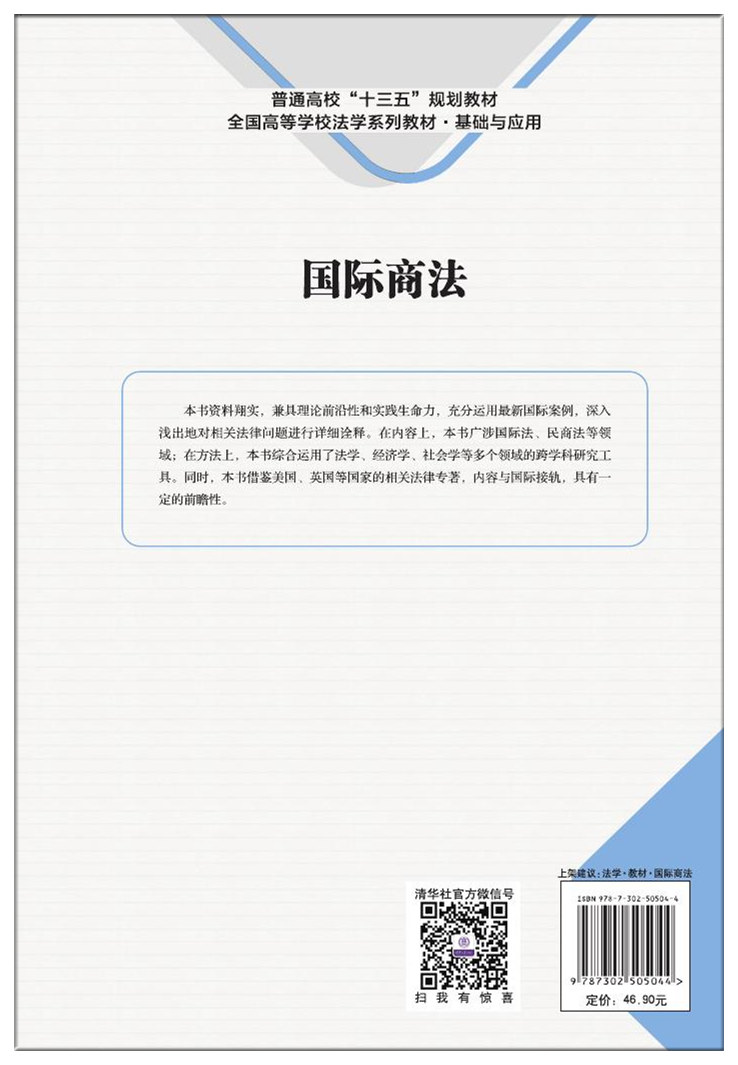 编写这本双语国际商法教材,主要基于以下原因和背景: 随着全球一体化的逐渐形成,国际商事活动也越来越频繁。日益多变的国际局势和日新月异的商业行为,将对我们的生活、学习、工作带来什么样的影响?我们将如何应对未来的变化和发展? 社会对高校、对高校学生的要求也越来越高,各专业之间的交叉学习和相互辅助也成为越来越多高校的办学新特色。鉴于高校综合型、复合型人才培养的目标和需要,国际商法不仅适用于法律专业的学生,同时也适用于国际贸易、物流管理、市场营销等不同专业的学生。它可以帮助学生了解和认识国际商业的法律规则。我在多年讲解国际商法这门课程的过程中,发现针对不同的专业,国际商法的知识侧重点不同。由此,我根据具体授课的情况,提出国际商法中的几个主要内容并整理成册,希望能够便于不同学科的学生接受和掌握国际商法的内容。 本书具有以下特点: 1. 引用了多部国外、国内国际商法教材的内容 [美]理查德·谢佛、贝佛利·韦尔、菲利伯多·阿格斯蒂著,邹建华主译: 《国际商法》,人民邮电出版社; [美]约翰·H.威尔斯著,金靖、肖敏、史苗苗、刘亚琦译校: 《国际商法》,中国人民大学出版社。 姜作利著: 双语版《国际商法》,法律出版社; 张学森编著: 中英文双语版《国际商法》,复旦大学出版社; 沈四宝、王军、焦津洪著: 《国际商法》,对外经贸大学出版社; 蔡四青编著: 《国际商法》,科学出版社; 左海聪主编: 《国际商法》,法律出版社。 2. 加入大量案例及法律阅读资料 通过110法律咨询网及其他法律网站的案例库,筛选适合章节所需的案例和阅读资料,帮助学生更快地对知识点...