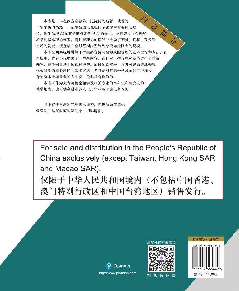 本书是一本在西方金融界广泛流传的名著,甚至被誉为“华尔街的圣经”。衍生品理论在现代金融学中实际占有核心的地位。衍生品理论(尤其是期权定价理论)的提出,不但建立起金融经济学的基本理论框架,而且在理论的指导下推动了期货、期权、掉期等市场的发展,才使金融在全球范围内发展到今天如此巨大的规模。 本书全面而系统地讲解了衍生品定价与金融风险管理的基本理论和方法,通过阅读本书,可以系统地掌握现代金融学的核心理论和基本方法。尤其是对于有志于学习金融工程和投身于资本市场业务的读者来说,阅读本书是非常有价值的。