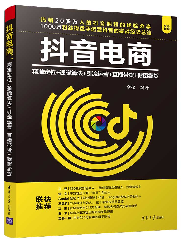 《抖音电商:精准定位+通晓算法+引流运营+直播带货+橱窗卖货》凝聚了作者开发的畅销20多万份抖音热门课程的内容精华,并结合笔者运营抖音的大量实战经验,以及孵化多位抖音网红的技巧,打造出了一套抖音电商高效运营方法。本书能够帮助抖音读者在精准定位、通晓算法、内容创作、吸粉引流、营销运营、直播带货、橱窗卖货等方面全面深入地学习,快速玩转抖音短视频电商运营。 《抖音电商:精准定位+通晓算法+引流运营+直播带货+橱窗卖货》适合刚进入抖音短视频平台创业的自媒体或新媒体人士,适合拥有个人淘宝、天猫等网店的店主,以及想通过短视频打造个人IP、宣传公司品牌和形象的人士阅读。