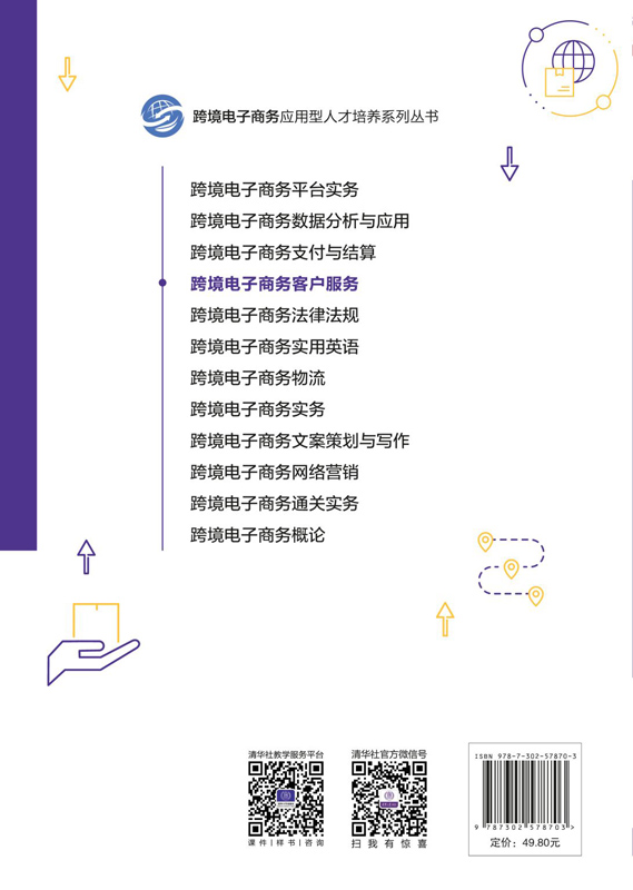《跨境电子商务客户服务》结合“121”工程特点,以培养应用型人才为导向,注重理论与实际相结合;采用“理论知识+案例分析”的写作结构,在阐述理论知识的同时结合大量案例;偏重技能操作,具有很强的操作性,详细介绍了跨境电商客服工作的重要内容;配套资源丰富,包括电子课件、教案、课程说明、课后习题答案、期末测试卷及答案、教学日历、案例库、微课视频。