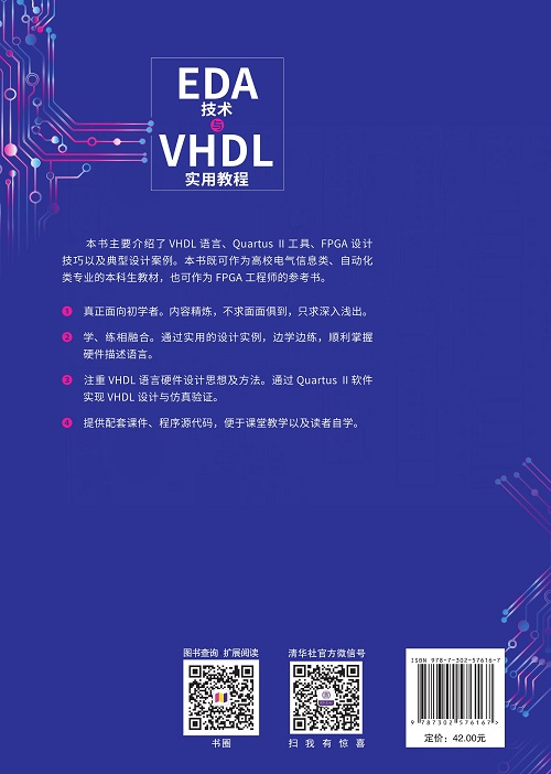 (2)学、练相融合。通过实用的设计实例,边学边练,顺利掌握硬件描述语言。
