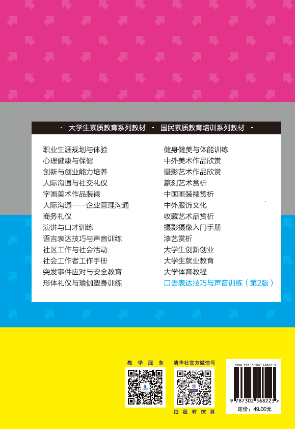 随着社会经济的快速发展,人际沟通与交流越来越重要,口语表达作为交际手段已成为日常工作、学习、生活中迫切需要的基本素质。本书系统介绍了口语表达能力所需要掌握的基本知识技能,并结合口语表达技巧训练、声音训练、能力训练安排实训,从不同侧面提升口语表达的专项能力。本书具有知识系统、内容丰富、贴近实际、注重创新、具有操作性、强化素质技能培养等特点,并针对口语表达能力提升,提供了大量拓展训练方案,因此既可以作为普通高等学校及各类职业院校学生口语表达训练的**教材,也可以用于企业员工培训,还可作为大学生就业和社区工作者提高自身口语表达能力和交际水平的指导用书。同时,本书还配备了视频资源,可以通过扫描书中的二维码进行观看学习。